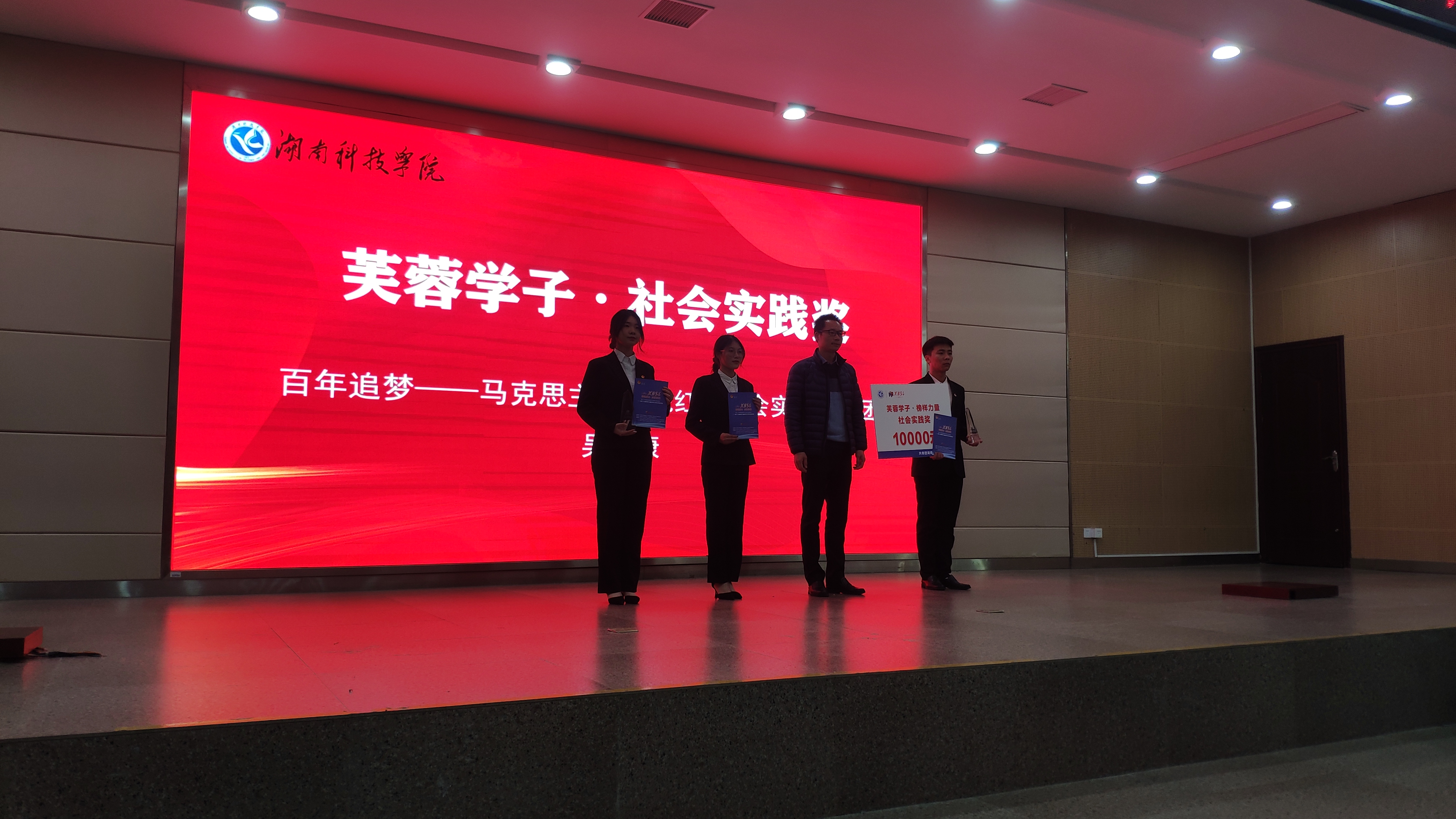 在此次颁奖典礼上,我院“百年追梦”红色社会实践服务团荣获 “芙蓉学子·社会实践奖”。