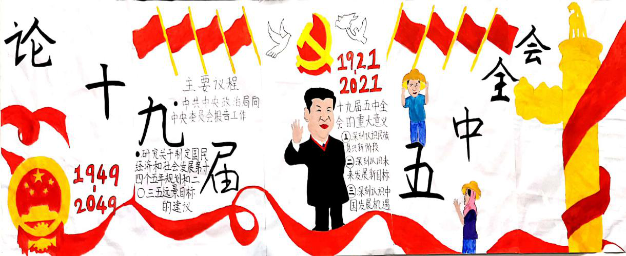 本网讯 “宏图已绘就,奋斗正当时!”近日,九游在线马克思主义学院思想政治专业20级学生为了深入贯彻学习党的十九届五中全会精神,通过“手绘海报”的形式,将十九届五中全会精神的实质和内涵“绘”入人心。