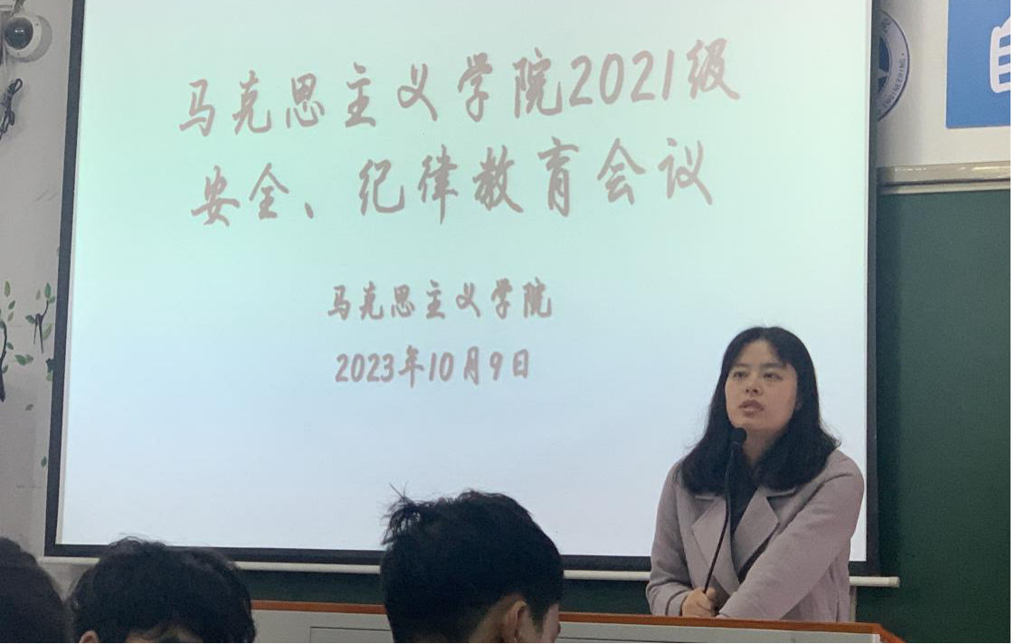 本网讯(记者 周灵敏)“木受绳则直,金就砺则利。”为增强我院学子的安全与纪律意识,10月9日,我院于鹤鸣楼501召开21级安全与纪律教育会议。会议由21级辅导员胡非主持,21级全体学生参加。