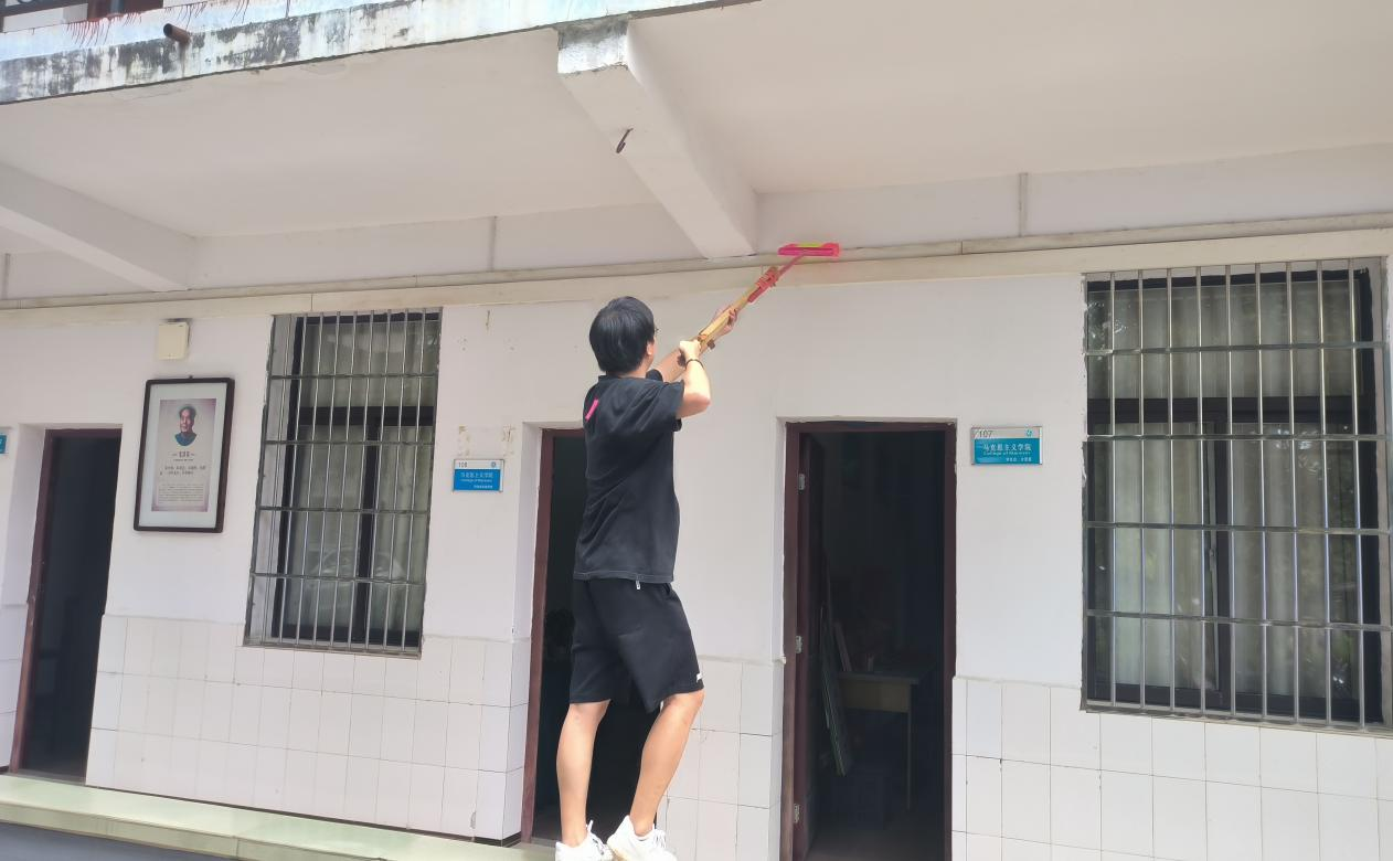 本网讯(记者 张遨宇)新学期将至,为营造干净整洁的学习环境,迎接省重点马院现场考评,8月25日上午,马克思主义学院留校考研学生利用复习闲暇时间,于鹤鸣楼及子和书屋开展“暖心清扫”活动。