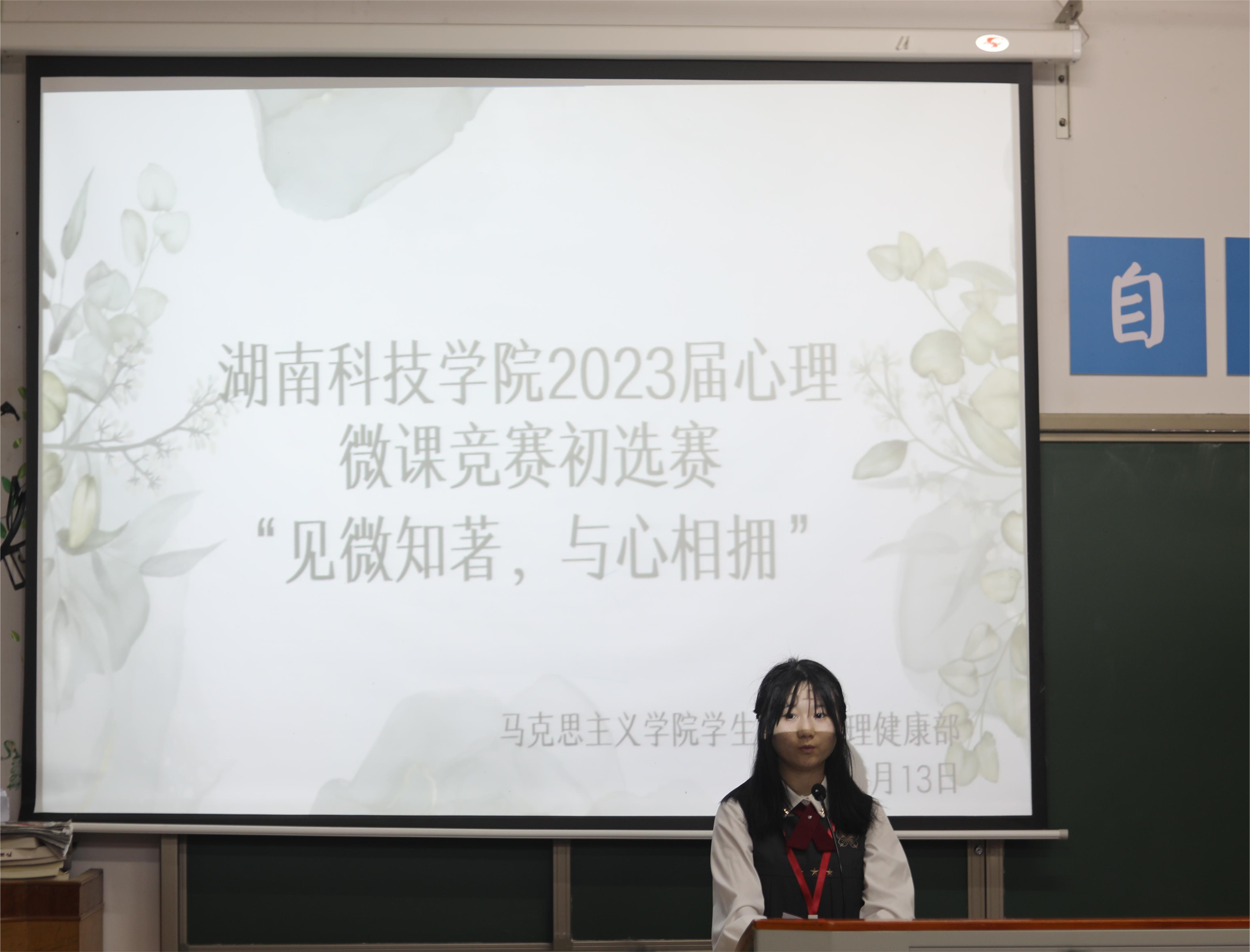 本网讯(记者 左琛)“心如明镜台,时时勤拂拭。”3月13日晚,马克思主义学院于鹤鸣楼501教室开展“见微知著,与心相拥”心理微课竞赛。