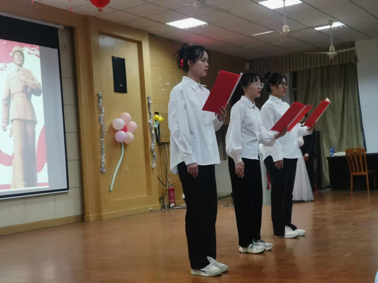 活动伊始,全体同学起立共唱共青团团歌,歌声传递着青春朝气与活力。同学们观看主题视频《学习雷锋》,从雷锋同志的言行中切身感受雷锋精神。在朗诵环节中,雷婷等同学以饱含真情的声音将活动气氛推向高潮。谢升文等同学带来的小品《学雷锋,做好事》则以反讽手法鼓励同学们在日常生活中多做好事、实事,把传承“雷锋精神”铭于心、化于行。