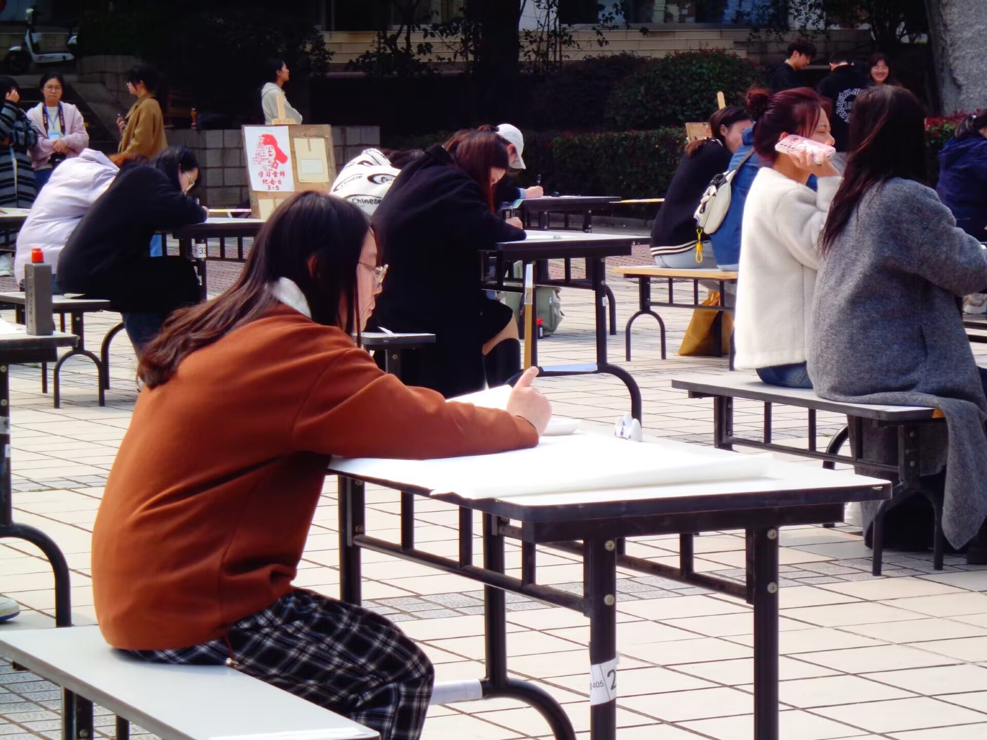 比赛过程中,我院龚苗怡、李婷婷等同学全神贯注,神采风扬,围绕主题泼墨挥毫,用笔墨书写自信,用笔墨来传承中华优秀传统文化。毛笔在宣纸上游走,钢笔在字帖上顿挫,一幅幅众彩纷呈的书法作品跃然于纸上,在展示书法魅力的同时,也将雷锋精神融入其中,传承发扬。