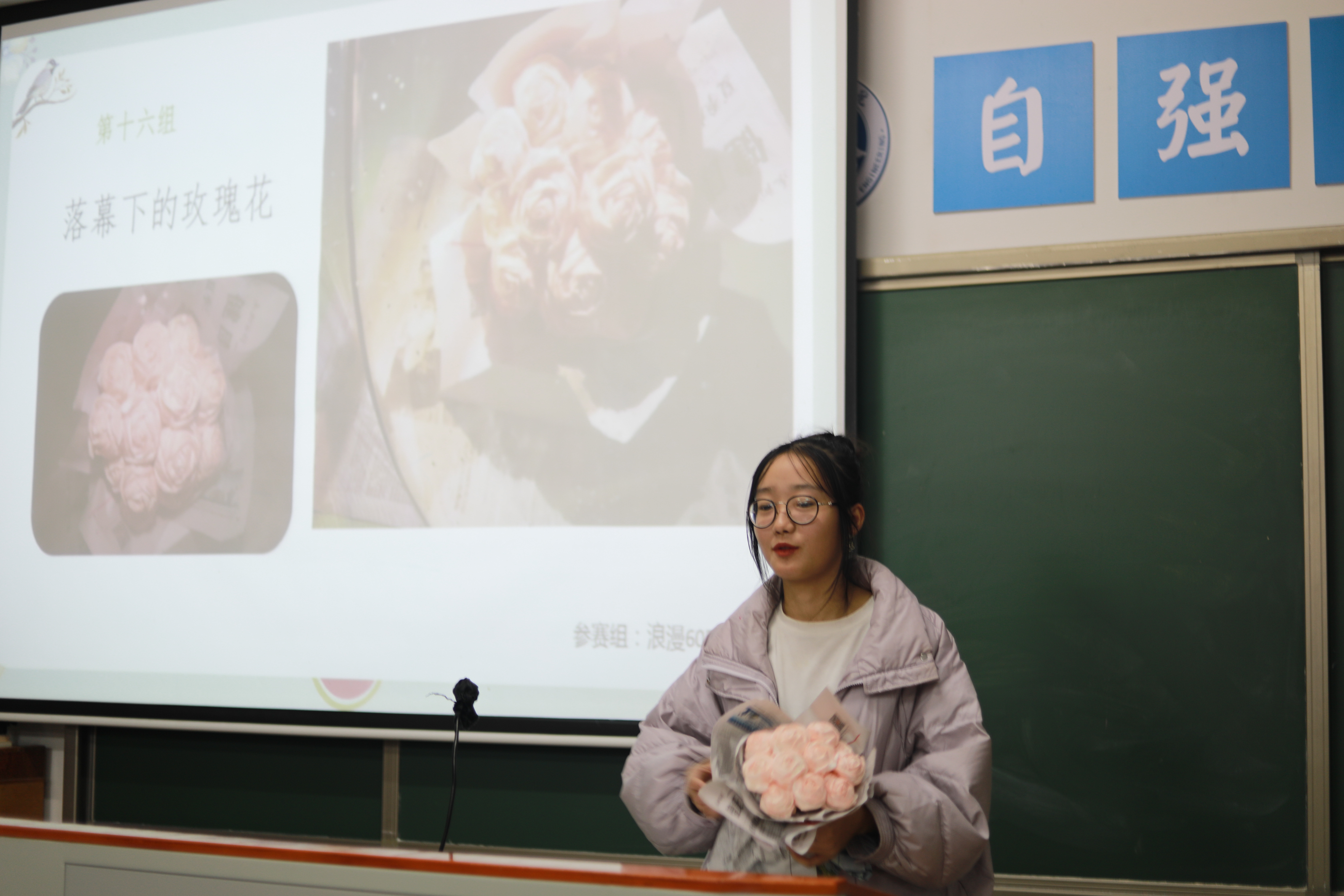 比赛结果公布后,黄丽老师上台总结道:“这次比赛让我看到同学们在静默期间并没有荒废时光,从作品的创作和讲解当中我也能感受到同学们对疫情管控的理解和对诗情画意生活的热爱。”