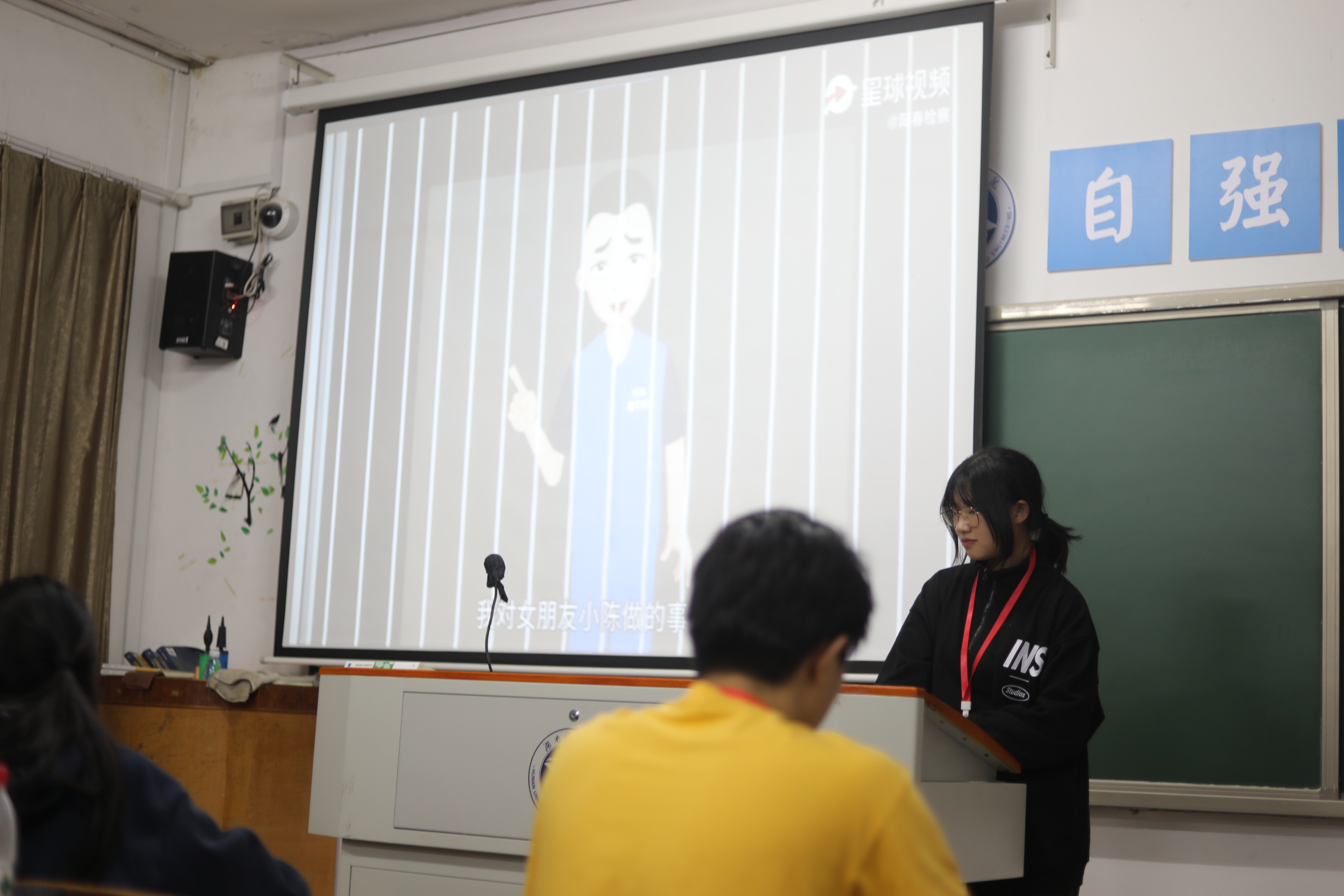 活动伊始,刘畅结合新闻案例和漫画为同学们讲述了校园欺凌及性侵害的含义及危害性,并讲解了如何规避危险、预防欺凌和性侵害。