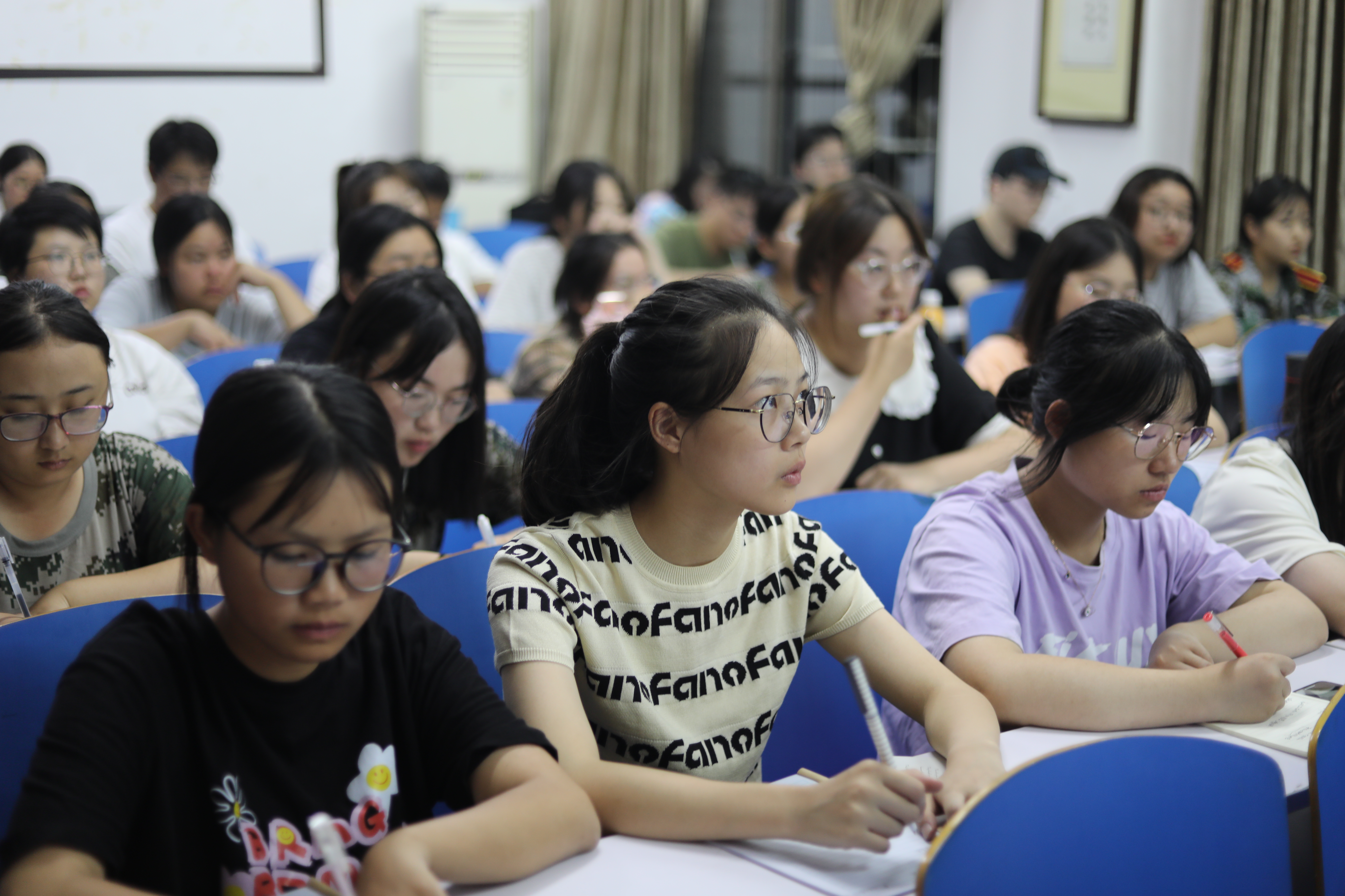 在场同学均仔细聆听了本次培训会,并做好了相关笔记。思政2201班谢升文同学表示:“通过本次培训,我明白了如何有效识别心理问题,如何多渠道、全方位反馈有效信息,对今后在大学生活中辨别心理问题更有信心了。”