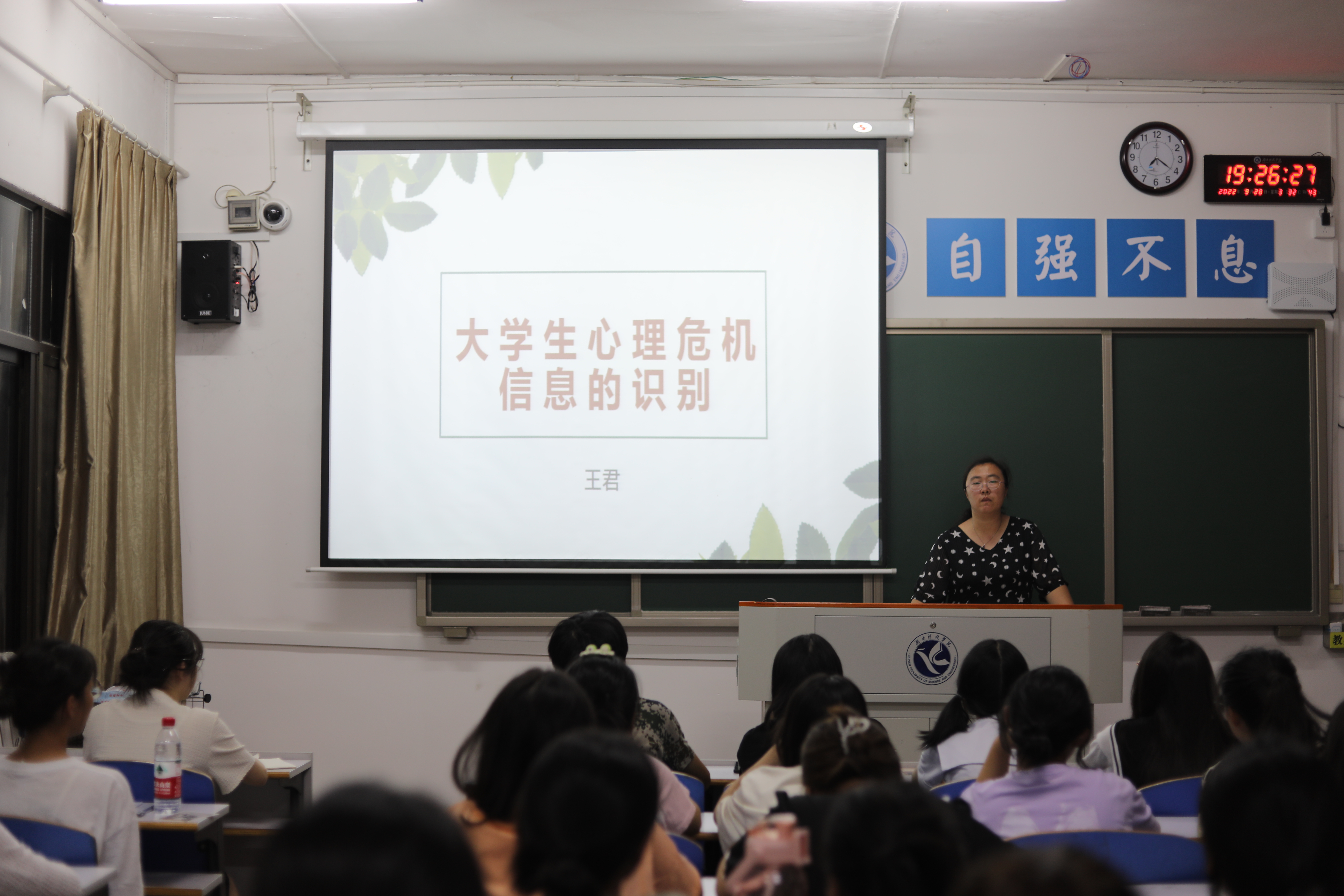 此次知识培训会主要围绕心理健康的重要性、遇到心理问题时的上报流程以及心理问题的相关案例研讨这三个部分展开。王君老师首先介绍了多种心理问题的表现形式,让大家能在以后的生活中识别各种心理问题;随后,王君老师具体介绍了应对和干预心理问题的相关措施,其中提到了要重点关注的一些学生群体;最后,王君老师带领同学们一起探讨了三个不同类型的心理案例。