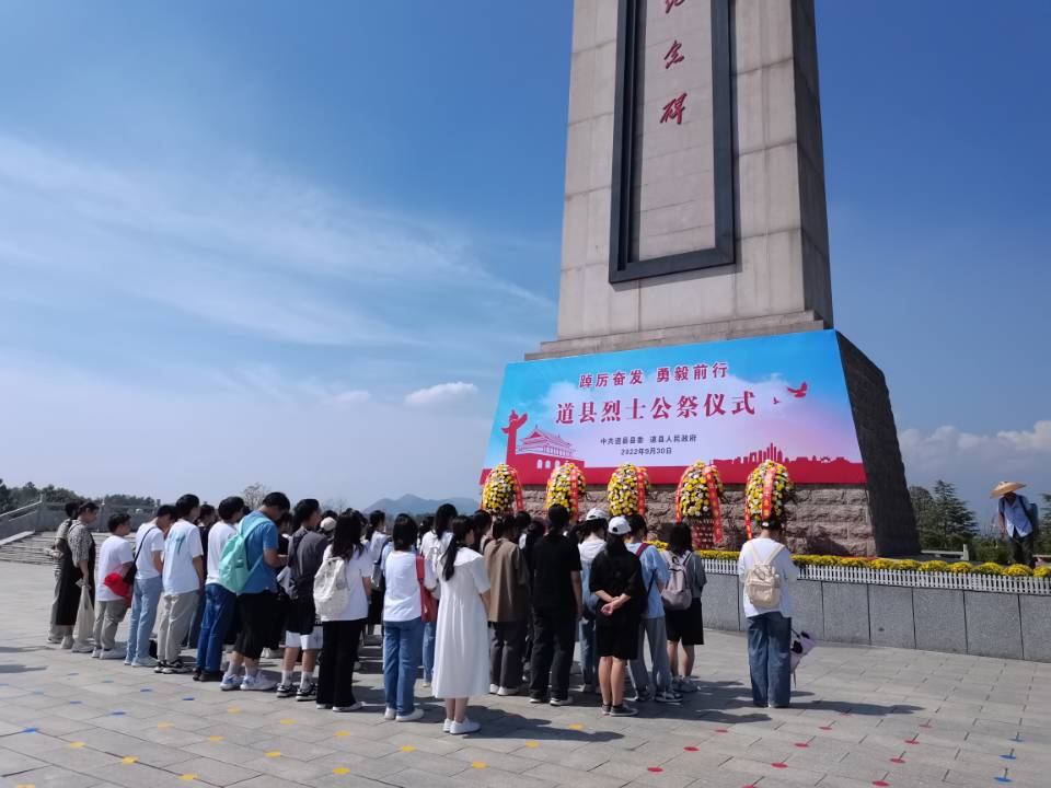 本网讯(记者 李慧)2022年9月30日是第9个国家烈士纪念日,为缅怀革命先烈,弘扬爱国主义精神,以革命文化、先烈英迹教育青年大学生,九游在线马克思主义学院于2022年9月30日当天,组织思想政治教育(师范)专业2022级全体学生前往湖南道县陈树湘事迹陈列馆,何宝珍故居等爱国主义教育场所开展“缅怀革命先烈,传承红色基因”国家烈士纪念日主题教育活动。