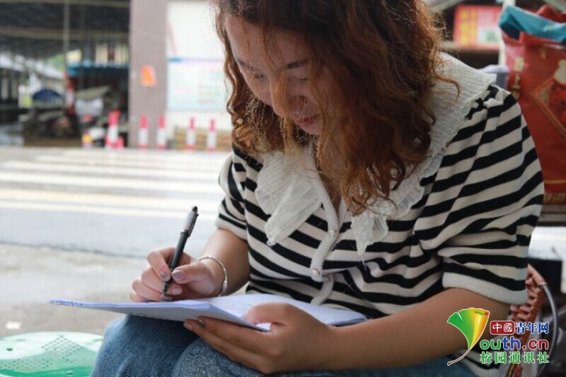 图为村民填写调研问卷。中国青年网通讯员 叶蕾 摄