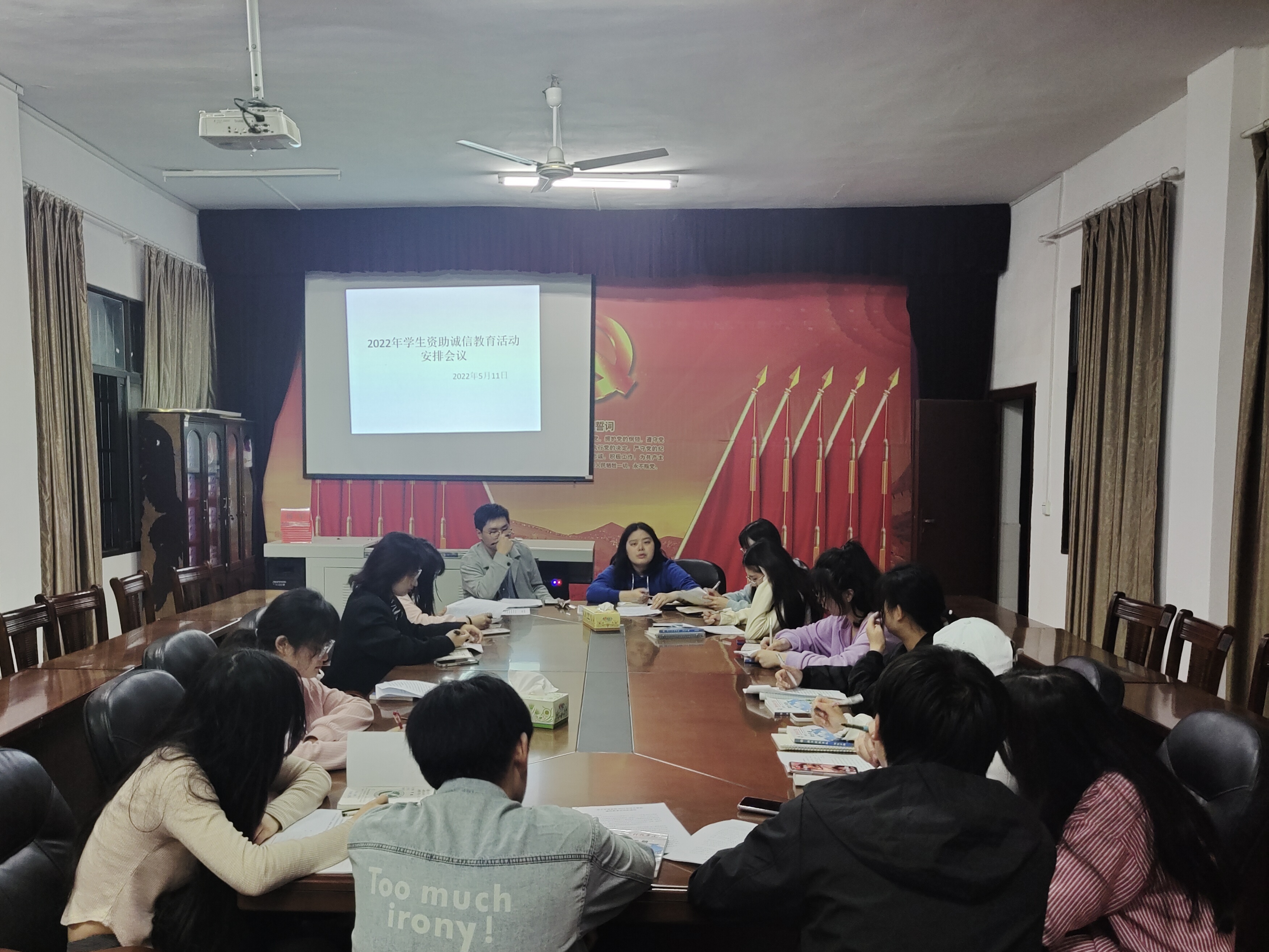 根据教育部学生资助管理中心、湖南省学生资助管理中心以及我校2022年学生资助诚信教育活动的工作要求和安排,培养学生知恩感恩,诚实守信的优良品质,进一步加强咨助政策宣传,充分发挥资助育人功能,2022年5月11日晚,马克思主义学院于鹤鸣楼405召开诚信教育系列活动安排布置。学生辅导员胡非,团学联办公室资助部,各班副班长参加会议。