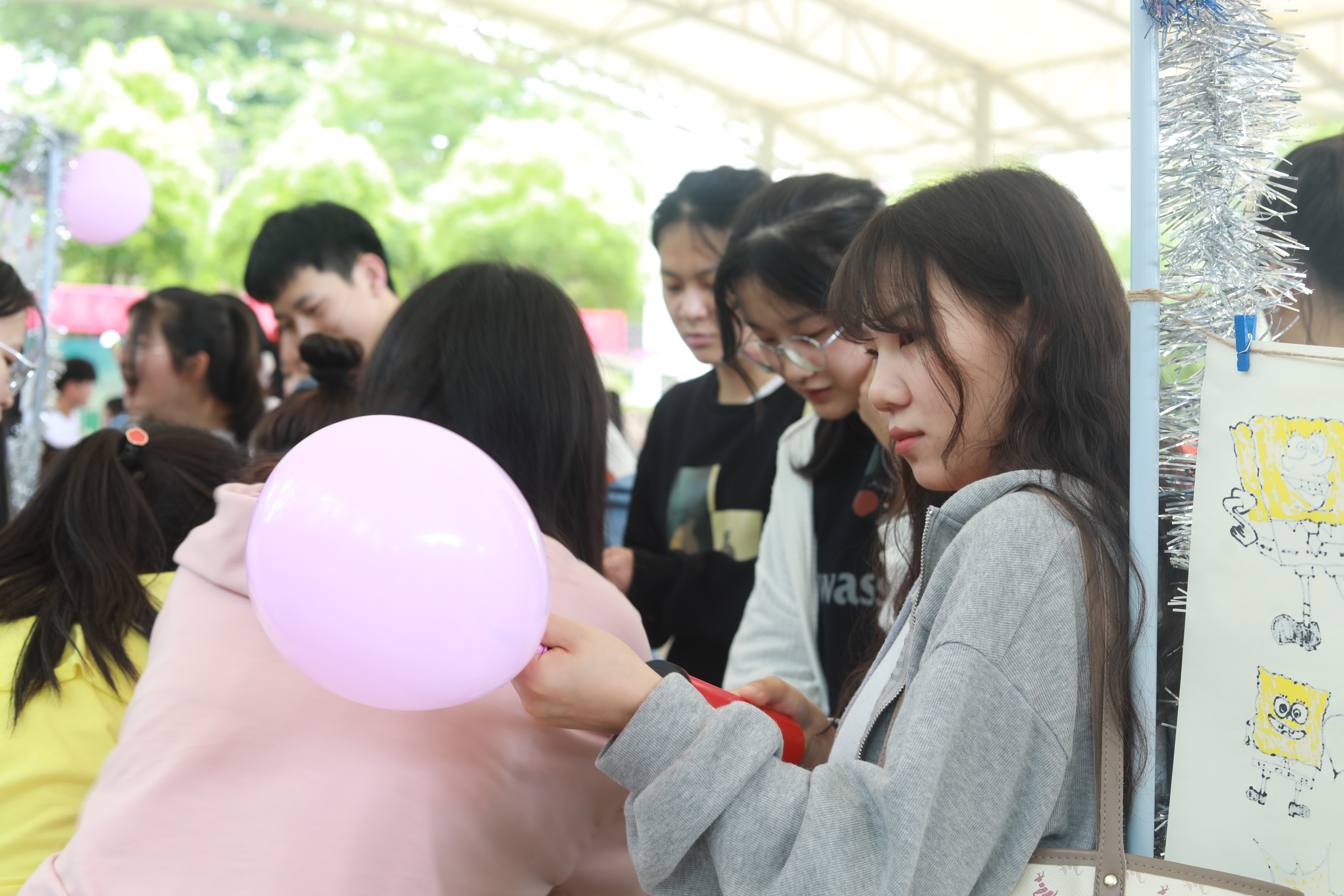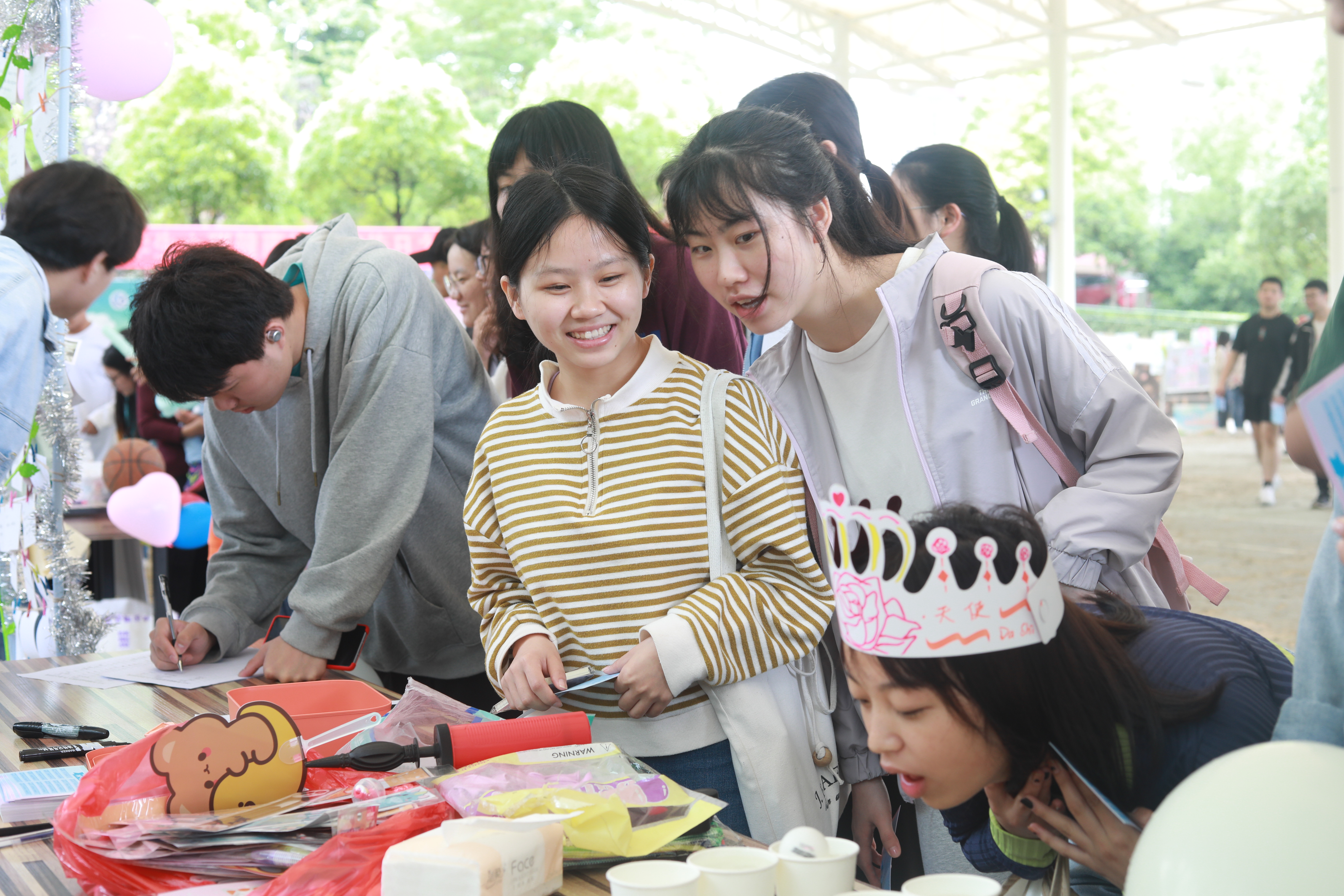 同学们在“压力爆破”游戏中通过扎爆气球上的“烦恼”宣泄了自己内心的压力;在“一鼓作气”游戏中,通过吹气的方式,将乒乓球依次从五个盛满水的杯子运到最后的空杯中,释放了心理压力;在“手不‘忙’脚不‘乱’抵达理想彼岸”游戏中,通过根据提示摆放手脚,直到将理想贴在“上岸”墙上,激励自己朝着理想奋发向上。