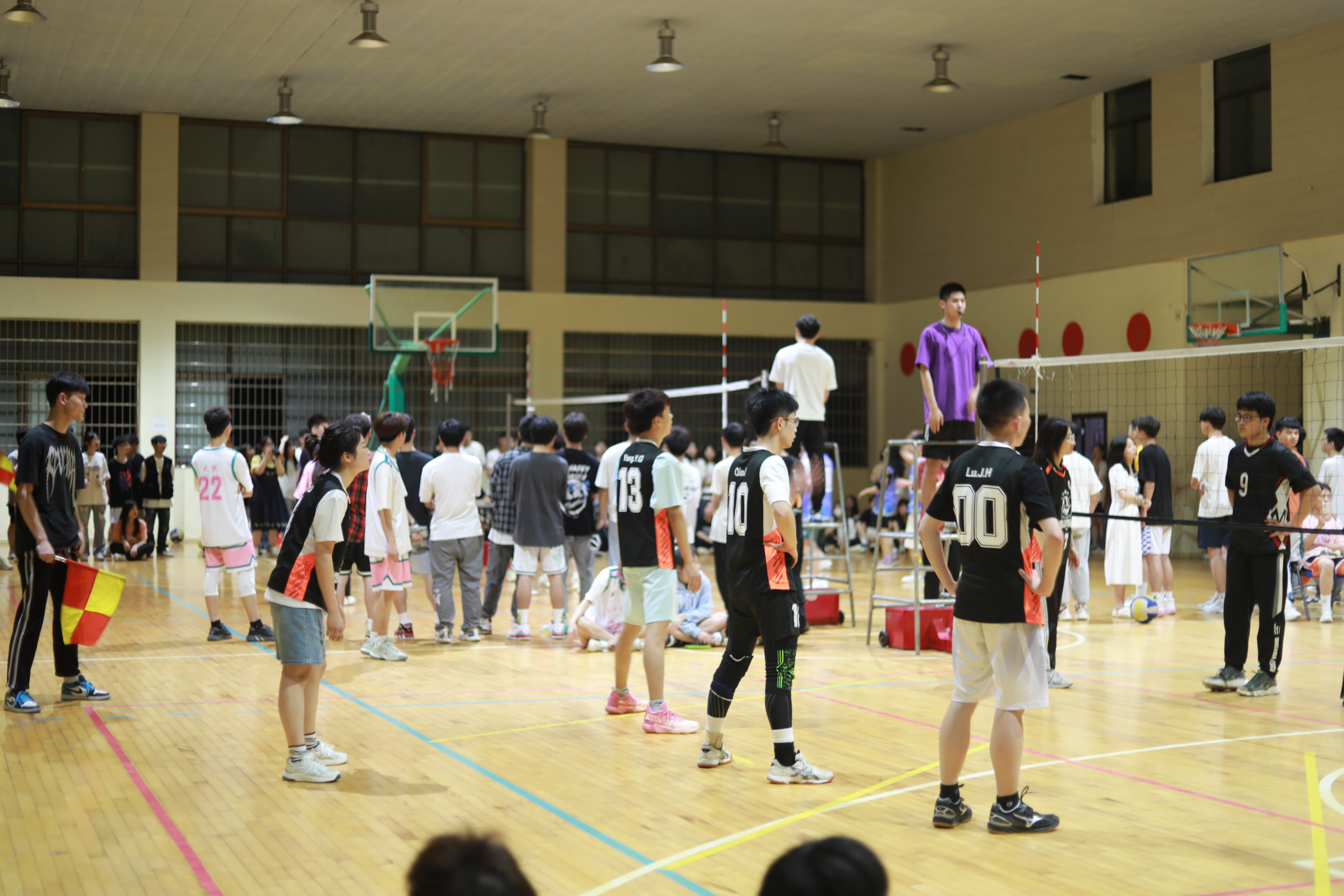 比赛场上,参赛队员们都尽力发挥出最好的水平,在赛场中汗流浃背,浑然不顾两条手臂被球硬生生砸到的淤紫,仍然奋力争先,当球在空中划出一道道抛物线,将一个个危机转化成时机,旋转、跳跃、扣杀,动作干净利落,队员们配合默契。