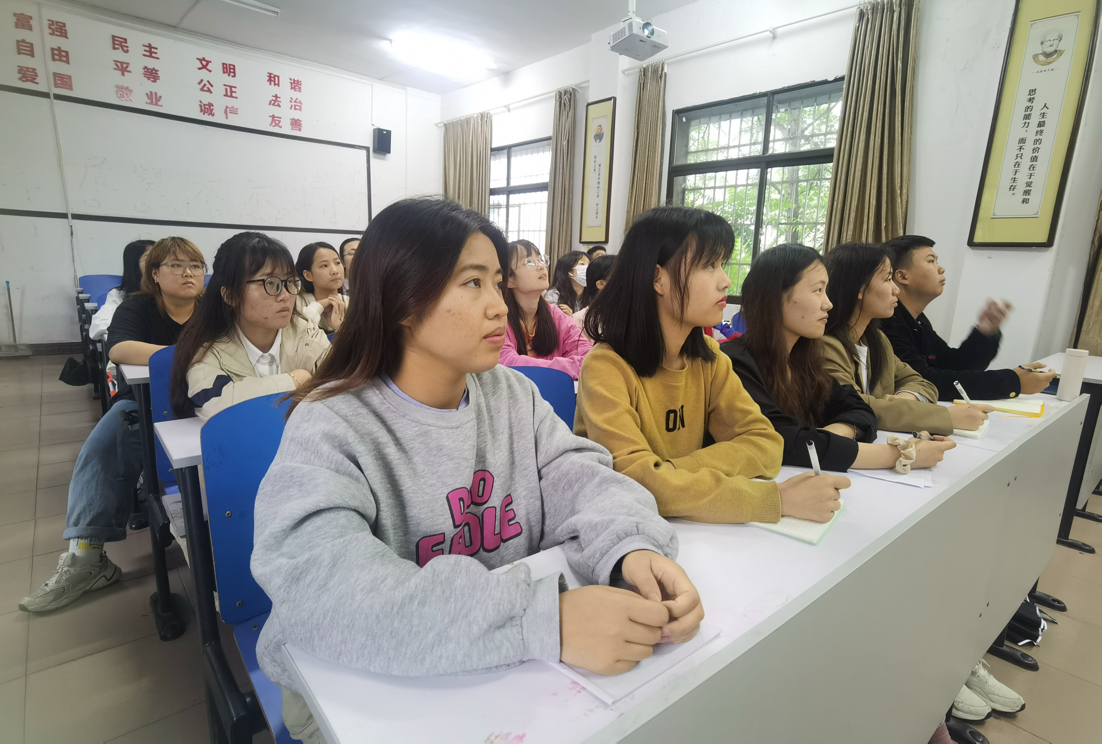 本网讯(记者 吴祖琳)“我们是五月的花海,用青春拥抱时代…...”,《光荣啊,中国共青团》唱出了青年身上激昂向上的状态,唱出了青年对祖国诚挚无比的热爱。5月10日上午,庆祝中国共产主义青年团成立100周年大会在北京人民大会堂隆重举行。中共中央总书记、国家主席、中央军委主席习近平在会上发表重要讲话。九游在线组织全校师生代表在潇湘大讲堂观看直播,马克思主义学院部分师生代表受邀观看,其余师生干部于鹤鸣楼406、407、501教室同步观看大会直播。师生齐聚,热议习近平总书记在大会上的讲话。