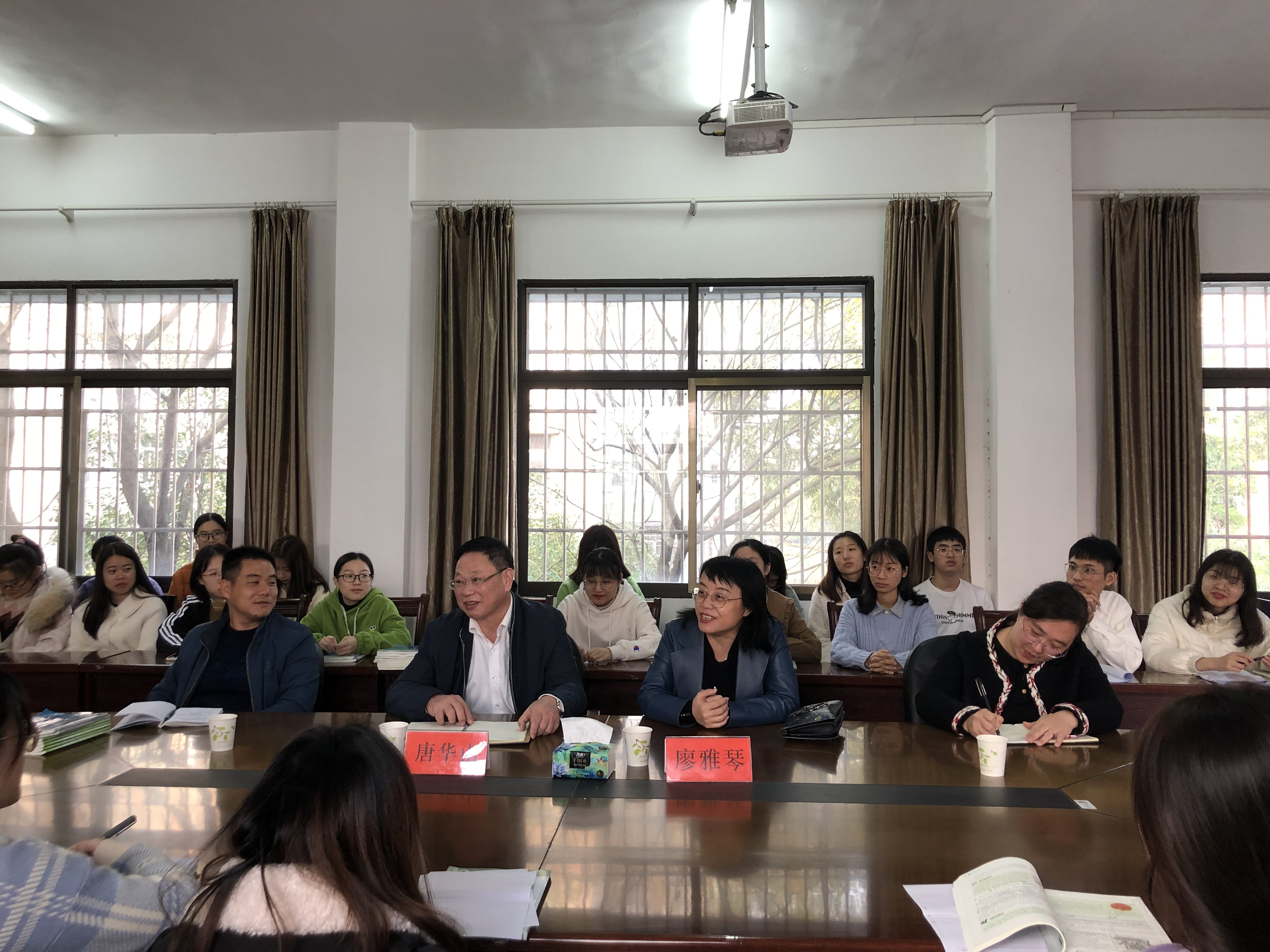 本网讯(记者 王婧)为有效调整2018级学生考前心态,坚定其自身考研目标。11月18日,马克思主义学院鹤鸣楼405教室召开2018级学生座谈会。本次会议由学工办主任王君主持,校学工部部长唐华山、马克思主义学院院长廖雅琴、党总支副书记兼副院长高丹出席,马克思主义学院2018级学生参加本次座谈会。