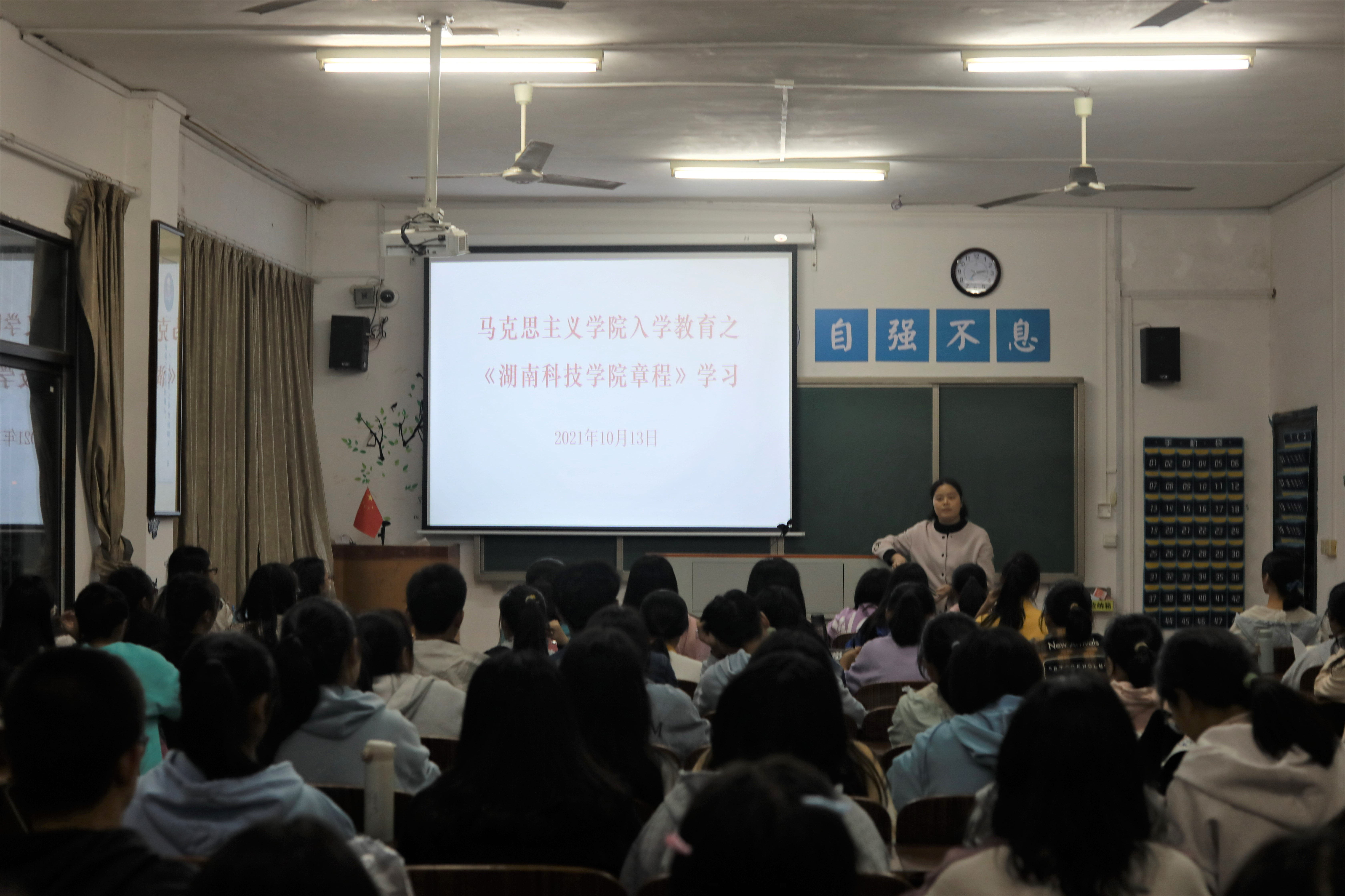 本网讯(记者 李金)为使学生进一步了解学校规章制度,加强纪律意识,10月13日晚,马克思主义学院于鹤鸣楼501教室开展《九游在线章程》学习,本次学习由21级辅导员胡非带领全体21级学生进行学习。