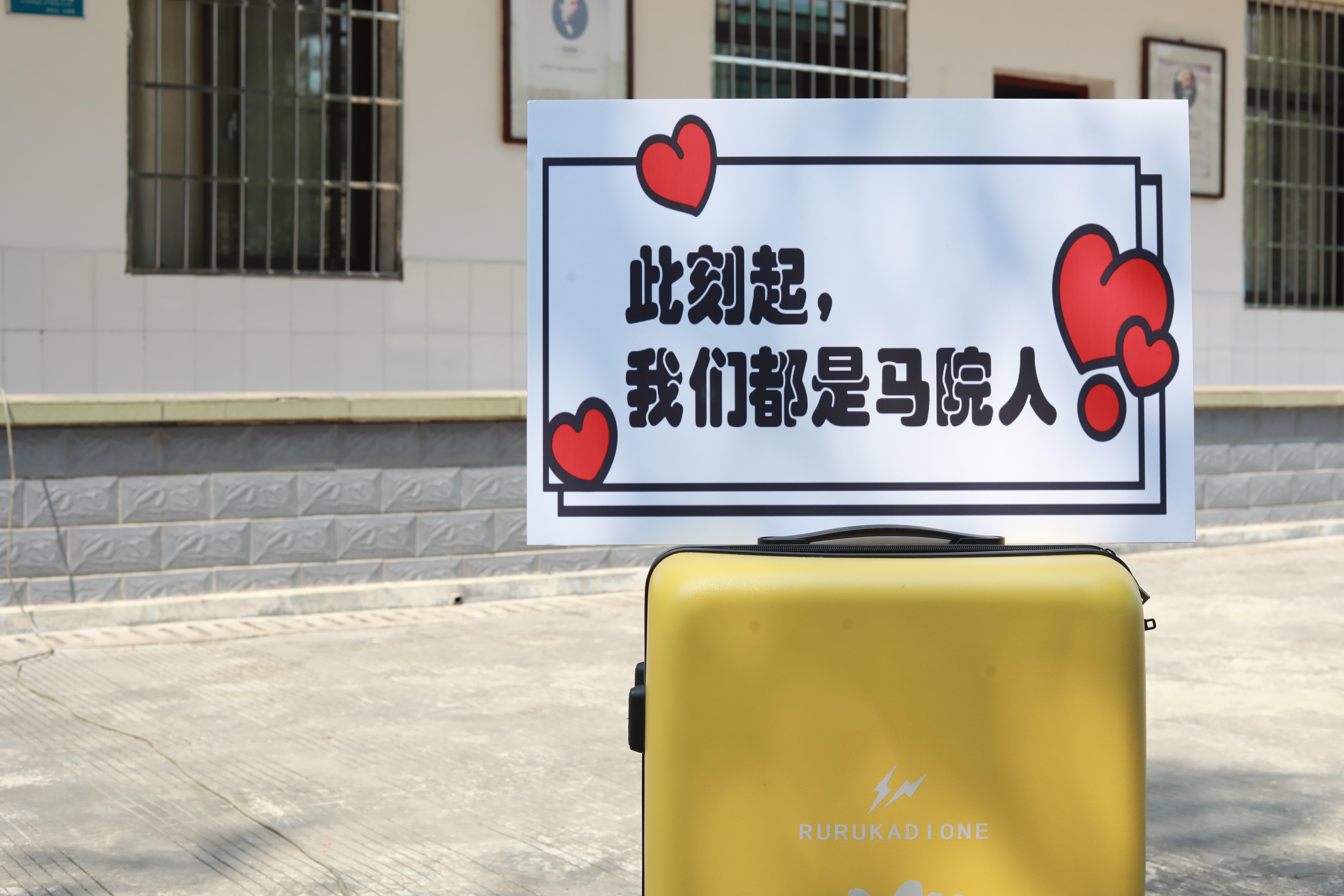 高挂的横幅上写着欢迎新生的话语