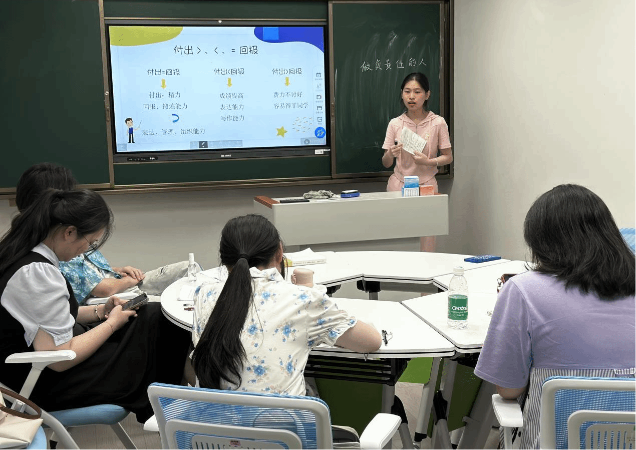 夏思敏同学创新情境思考的形式,以评议热点话题作为课堂导入,趣味十足,引导学生主动思考法治与自由的关系,形成微课堂的完整闭环;雷雪钰同学以身边违法行为举例,佐证法律的刚性要求,深刻严谨地讲述了违法行为的不同程度,突出“法不可违”的重点;纪颖同学开篇抛出三个关键词,以杂交水稻之父“袁隆平”为例,讲述青年要以劳动兴国、实干兴邦;结合党的二十大报告,许圣翰同学从多角度回答了我国的机遇与挑战,讲课条理清楚,概念准确,以专业知识打造特色课堂;在讲授“做负责任的人”这一课,唐嘉蔚同学结合学生实际,巧妙运用课本案例,注重启发,化解案例,传递责任是份重担的。