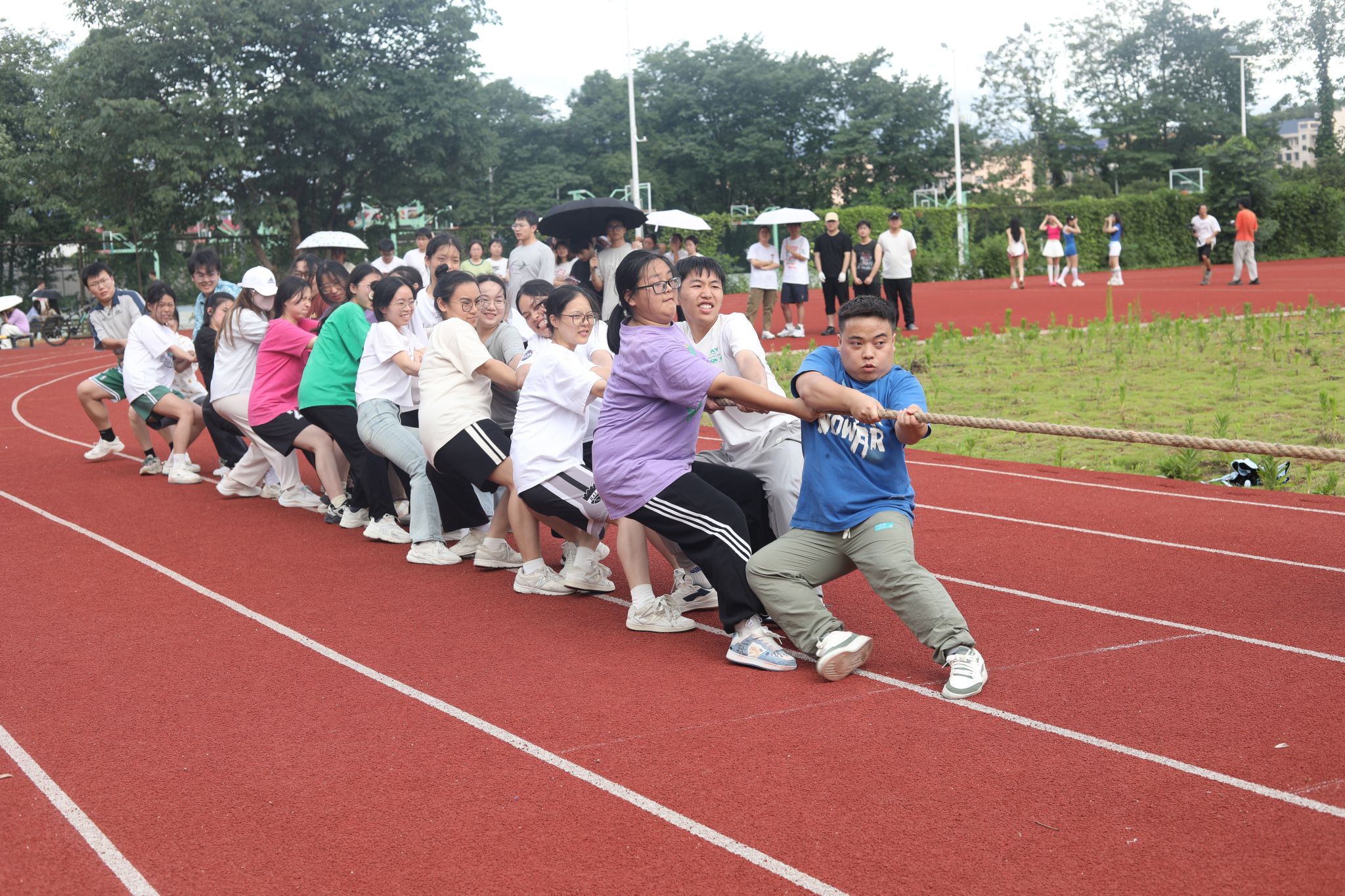 随着裁判一声哨响,场上的气氛瞬间被点燃。同学们抓紧绳索,脚掌贴地,重心向后,攒足劲头,为班级荣誉拼力而战。“1、2......1、2......1、2”红布条来来回回,不仅代表双方体力的拉扯,还象征着意志的碰撞。