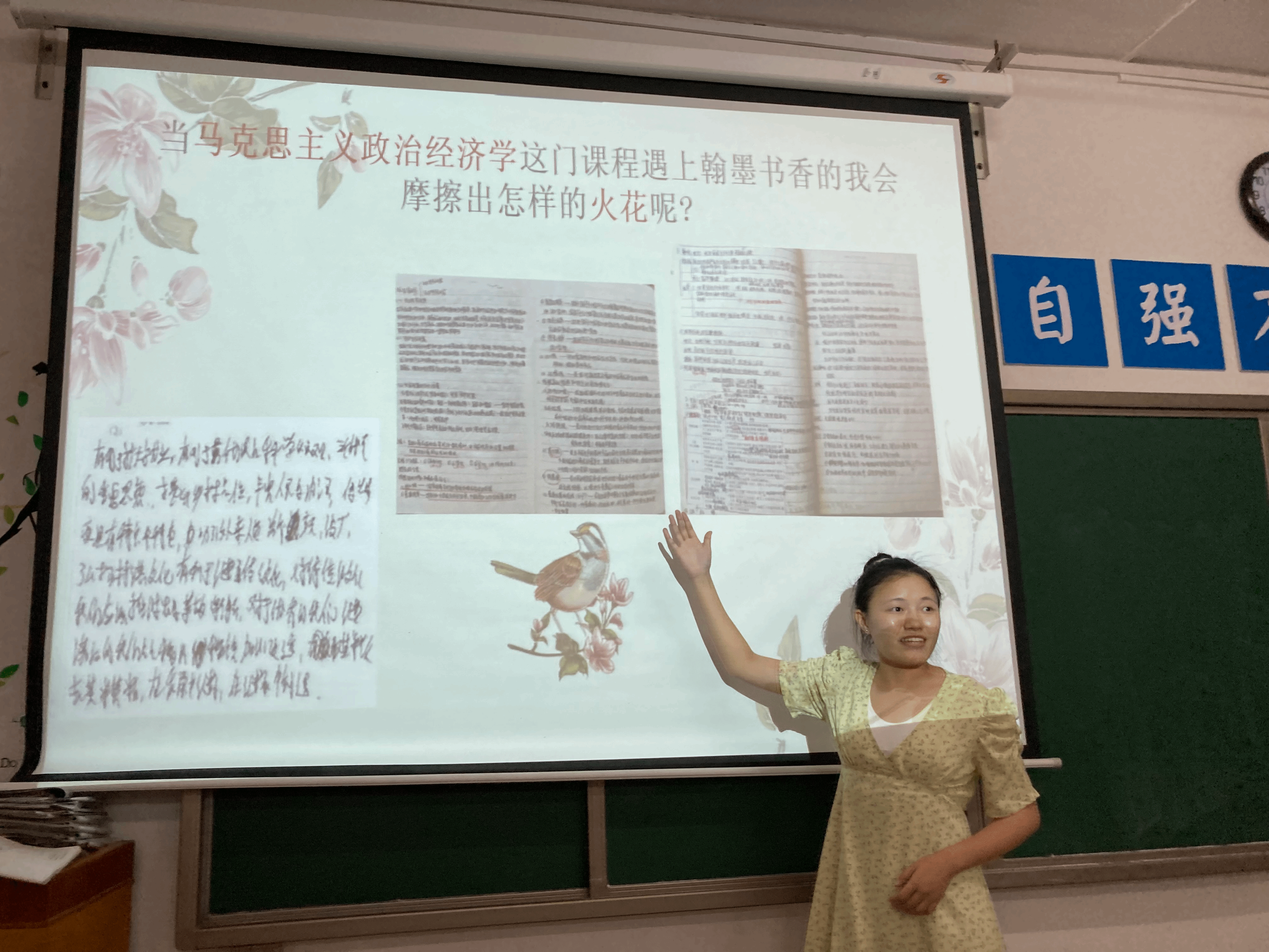 自本活动开展以来,我院学风建设部共计征集到38份课堂笔记资料,经初步遴选,共有囊括了政治经济学、政治学原理等课程的10份作品进入最终的决赛展示环节。其中,来自20级思政2班的张娟秀,不仅将自己的课堂笔记带到了决赛现场,更通过精美的PPT为同学们分享了学习方法与学习心得,帮助同学们提高学习效率,养成良好的学习习惯。