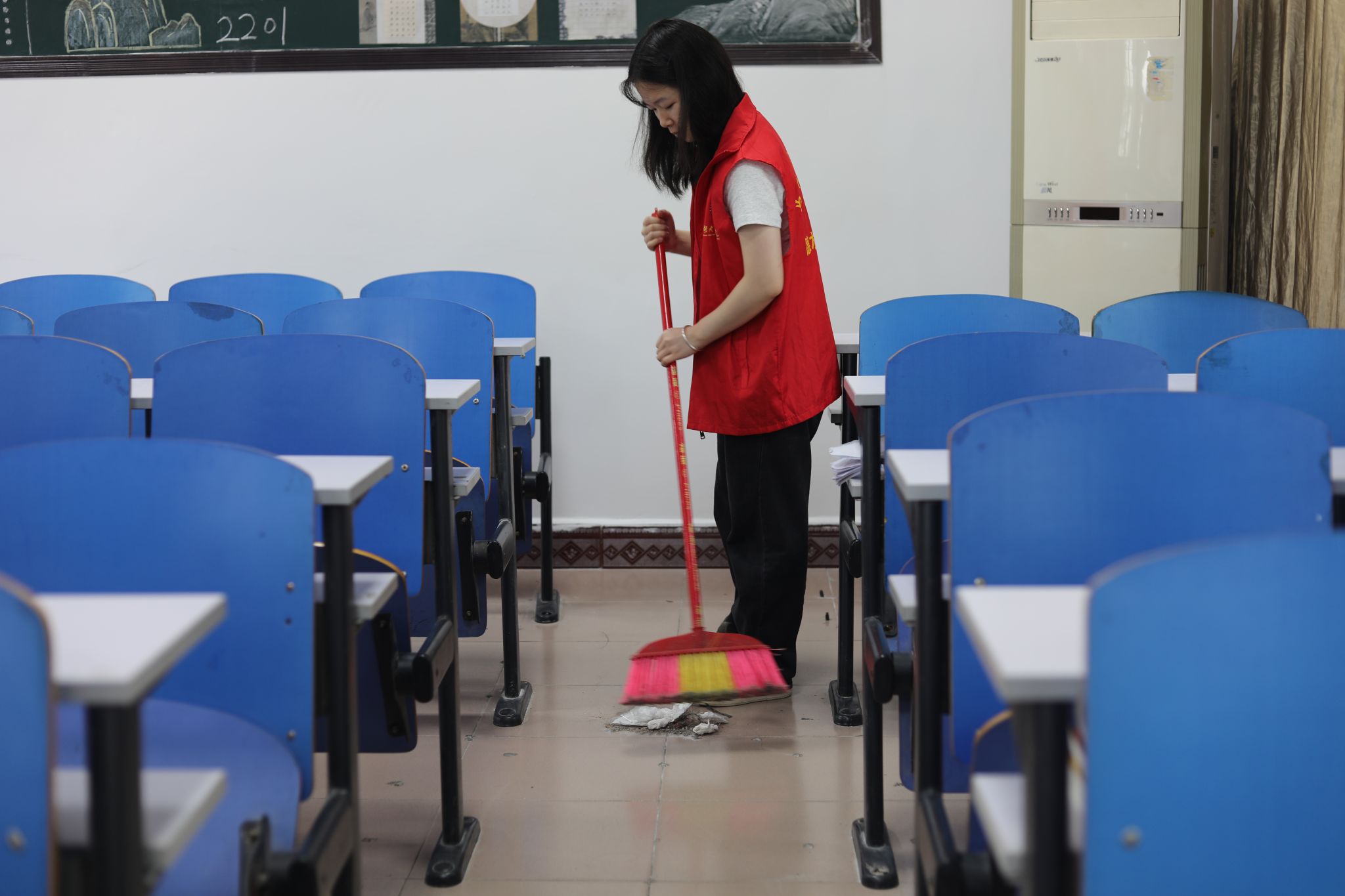 活动过程中,同学们按照分工及清扫要求各司其职,带上劳动工具分别前往负责区域进行清扫,同学们手持扫帚,认真清扫地面垃圾,或手拿抹布,对窗户及楼梯扶手进行擦拭,大家配合默契,现场忙碌而有序,最终在同学们的共同努力下鹤鸣楼焕然一新。