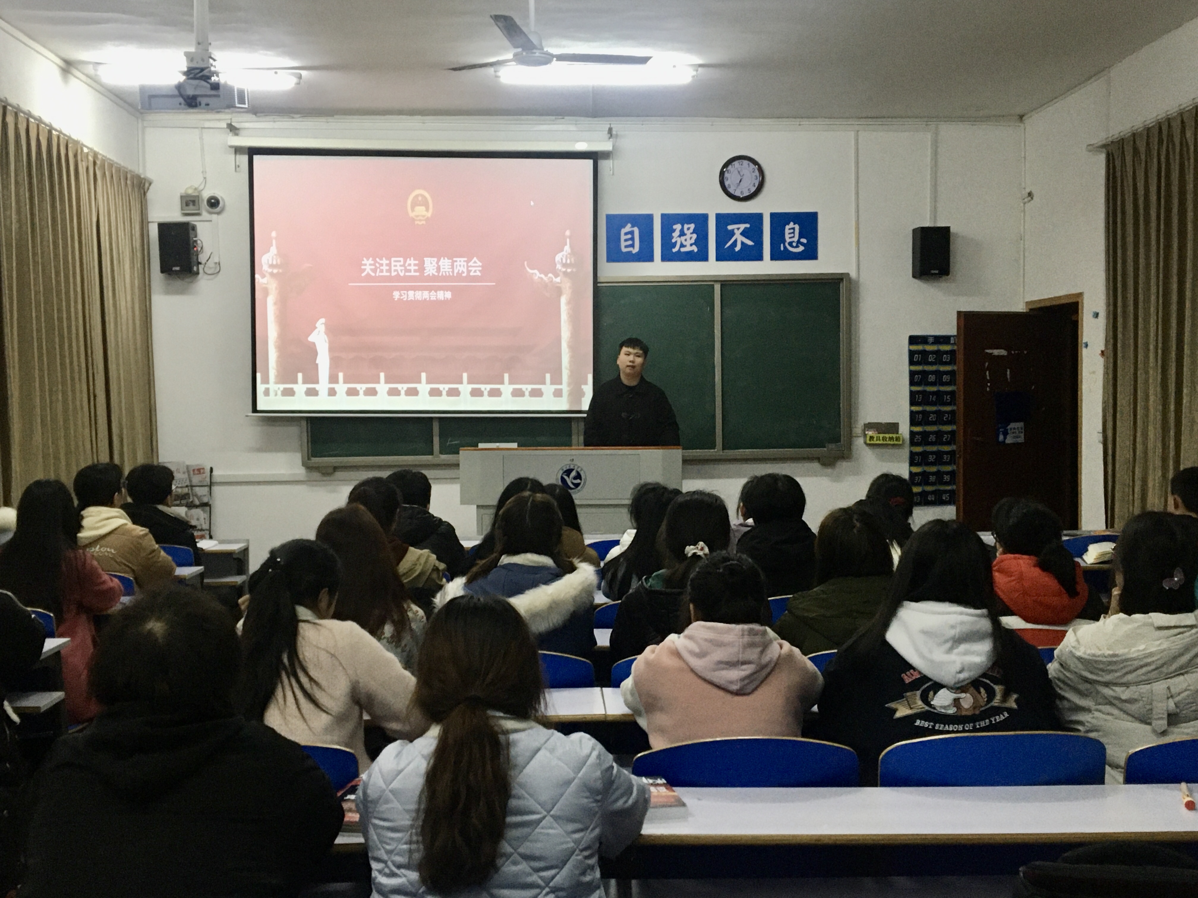 本网讯(通讯员 吴祖琳 王华炜)全国政协十三届四次会议和十三届全国人大四次会议先后于3月4日、5日在北京开幕。为帮助全院学生及时了解两会动态,准确把握时代脉搏,马克思主义学院各个班级自发组织学生学习两会精神。通过微信、微博、报纸、学习强国等多种途径学习,并结合自身实际,畅谈理想体会。