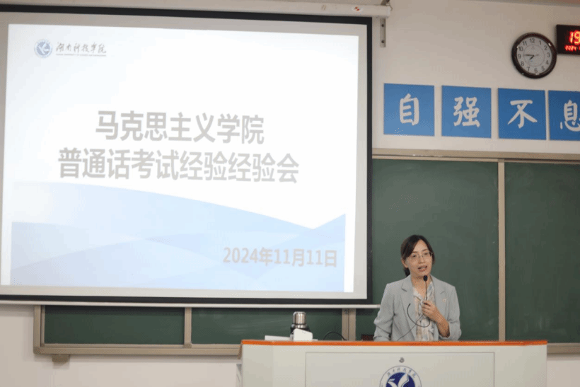 本网讯(记者 易媛媛)为帮助同学们熟悉普通话考试规则,提高应考能力,以积极的心态面对普通话水平考试,11月11日,马克思主义学院于鹤鸣楼501教室举办了普通话考试经验分享会。本次活动邀请到我院副教授张恒艳老师主讲,24级全体同学参加本次活动。