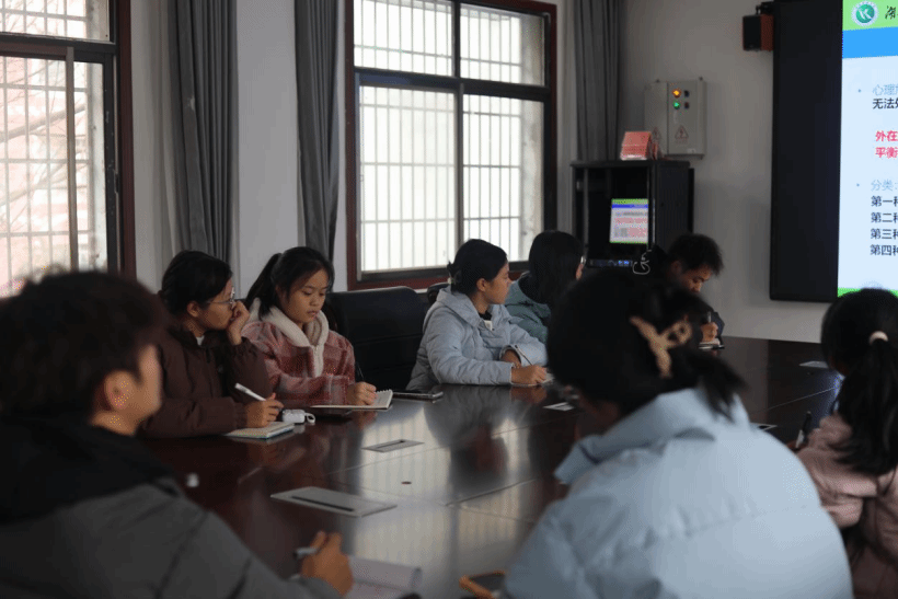 本网讯(记者 黄安)11月26日下午,马克思主义学院于鹤鸣楼405教室开展“大学生心理危机识别与干预”主题心理信息员培训。此次培训由心理专干曹惠如主讲,心理健康部学生干部及各班班长、团支书及新生寝室长参加。