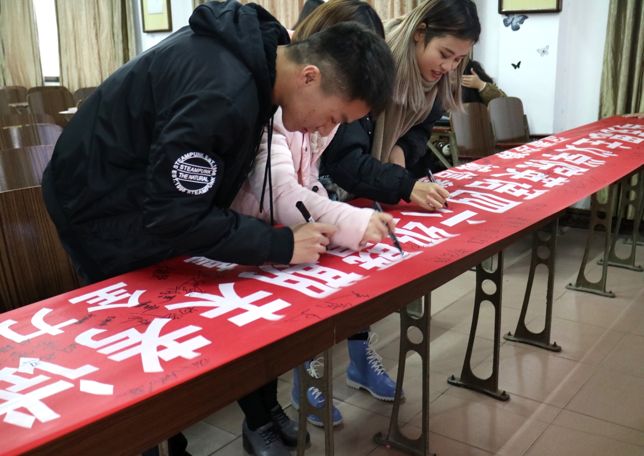 会后,学生在动员横幅上签字,以表考试的决心和信心。学生吴秀玉说:“我通过会议端正了学习态度,增强了考试信心,受益匪浅。”