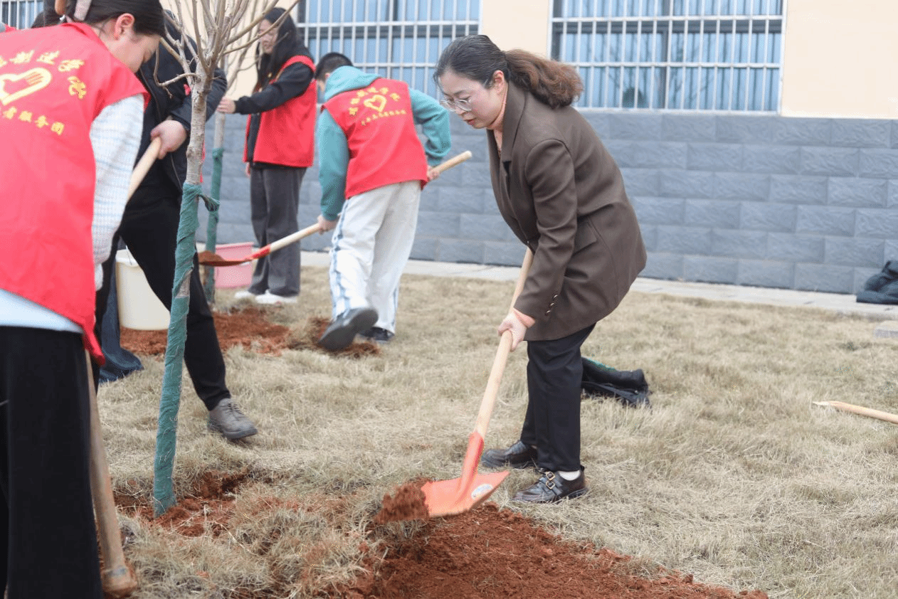 活动现场,马院师生们热情高涨,分工明确,有的挥锹铲土,有的扶苗填坑,有的提桶浇水,师生间紧密协作,配合默契,每一棵树苗的栽种都饱含着大家对绿色未来的期待,为校园种下了一株株“希望”之树。