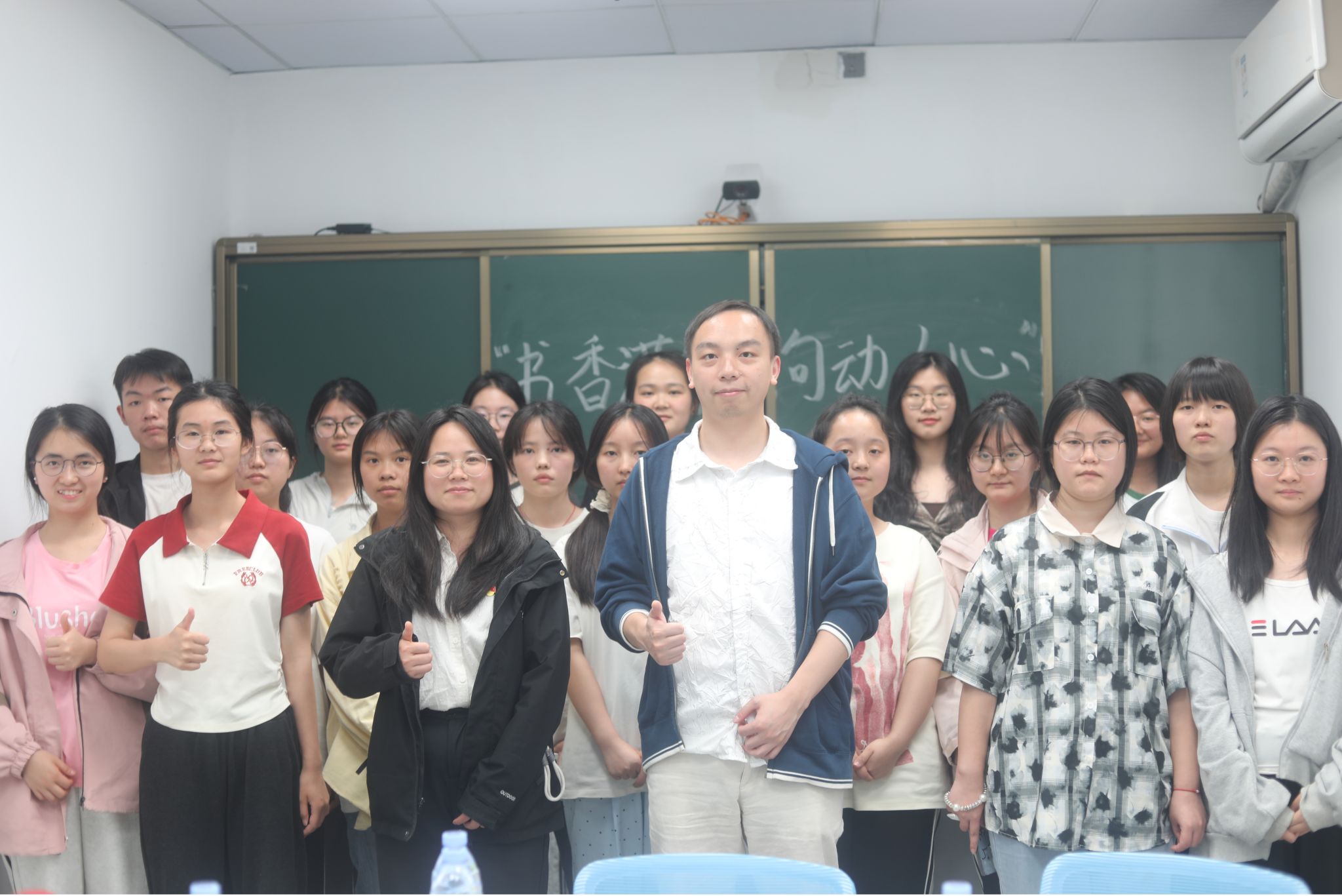 本网讯(记者 郭江雁)4月23日晚,马克思主义学院思政2402班在鹤鸣楼107微格教室举办“书香满径,句动人心”读书分享活动。活动特邀马克思主义学院21级、22级辅导员曹惠如、马克思主义学院专任教师邓昱全博士、优秀学长黄俊松参加,现场气氛轻松惬意,同学们与老师、学长围坐,共享阅读乐趣。