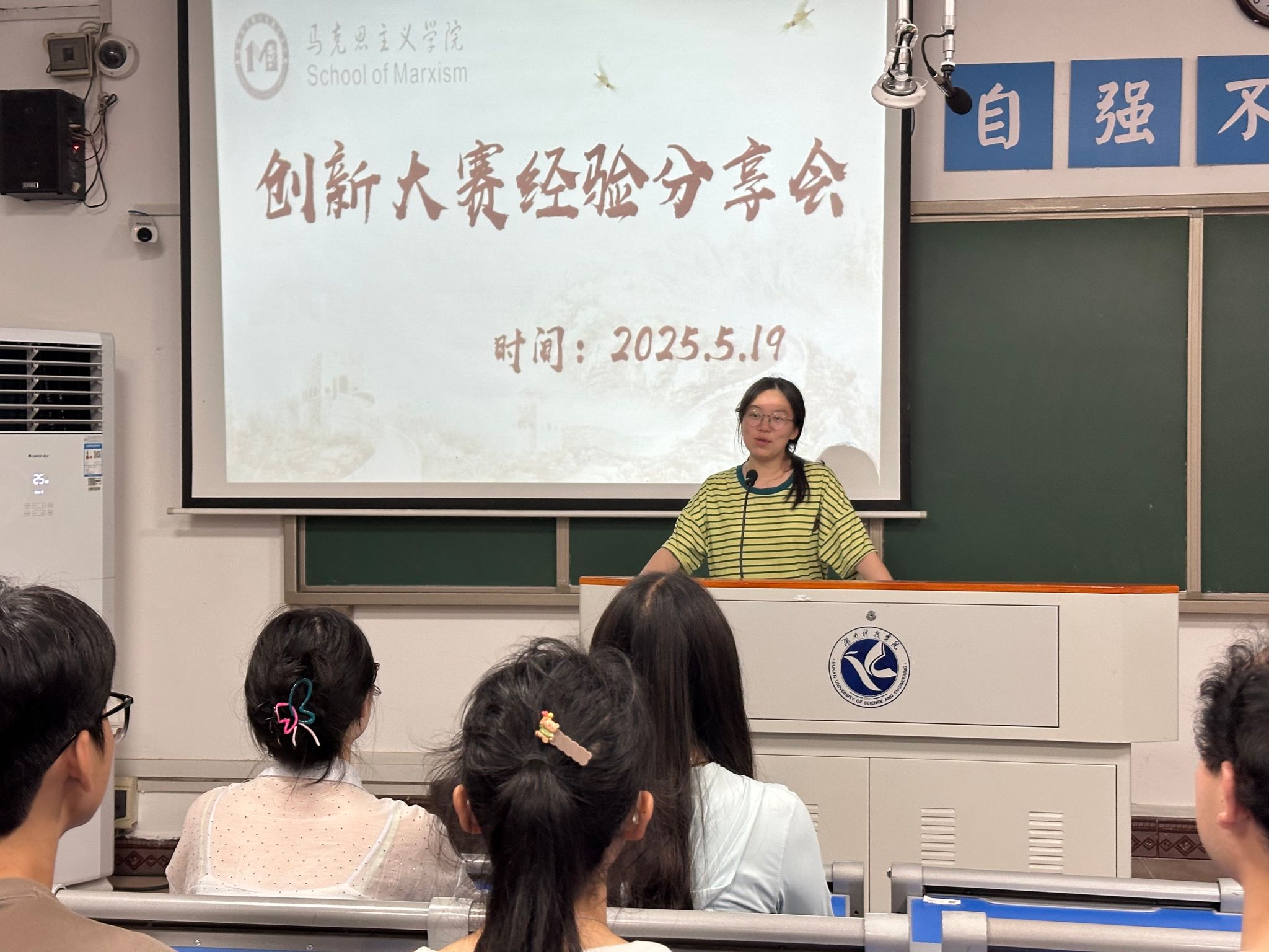本网讯(记者 吴志伟)为深化创新实践教育成果,助力院赛优秀团队冲刺校赛,5月19日晚,马克思主义学院在鹤鸣楼501教室举办大学生创新大赛经验分享会。学院院赛表现突出的优秀小组代表、观众参与活动,活动由辅导员吴志伟老师主持。