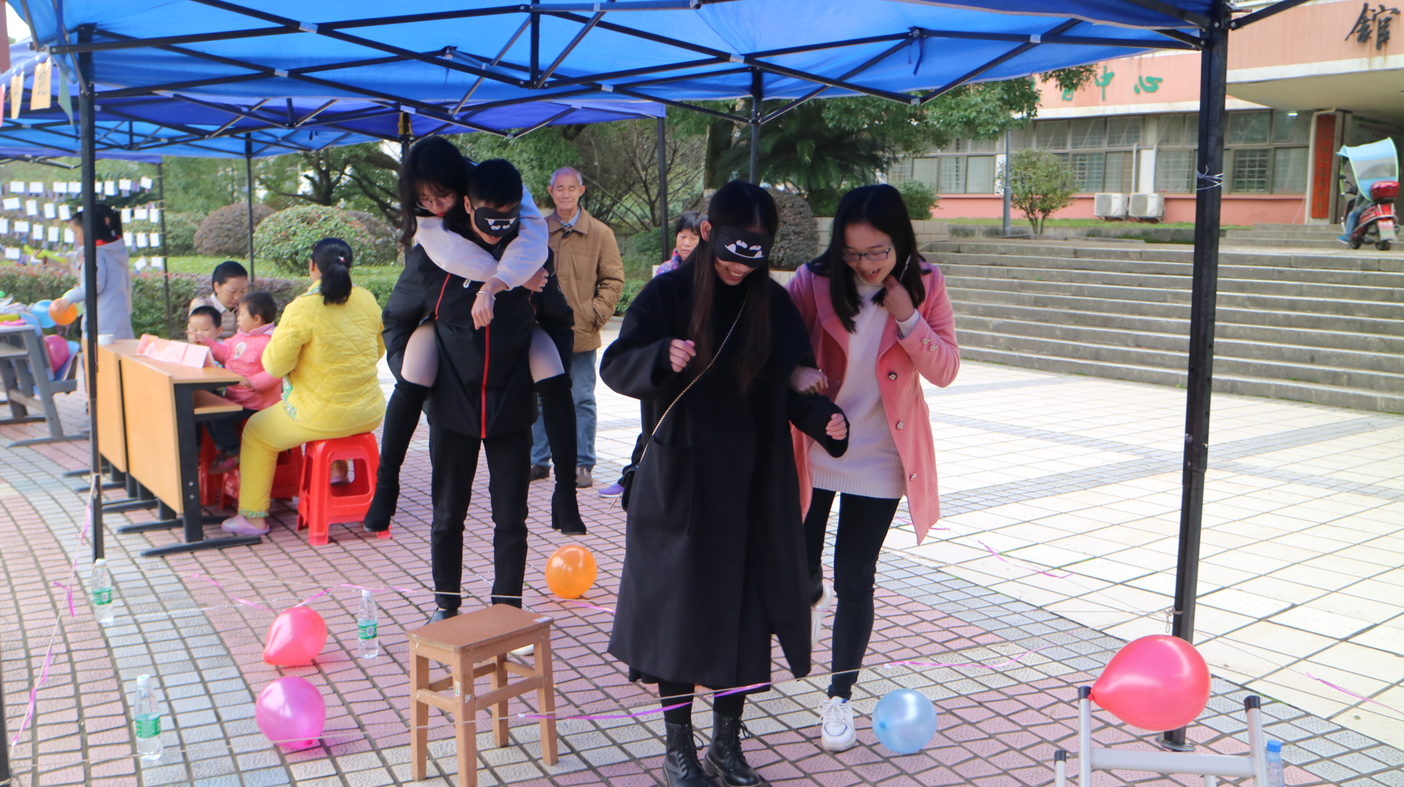 活动用五彩气球和矿泉水瓶设置路障,以此比作人生旅途中的“挑战”,并在终点设奖励,象征着人生旅程中的“成功”。通过玩家两两配合,越过重重“挑战”到达终点,趣味十足的活动吸引众多学生参与其中。同学们在游戏过程中,不仅体验到游戏乐趣,促进彼此间的交流与了解,增进友情,更让他们明白历经挫折苦难后,总会风和日丽,彩虹呈现。活动开展不久后,该院党总支副书记高丹亲自体验活动,感受乐趣,活动现场气氛高涨。