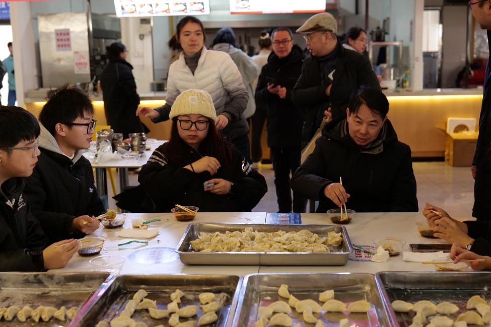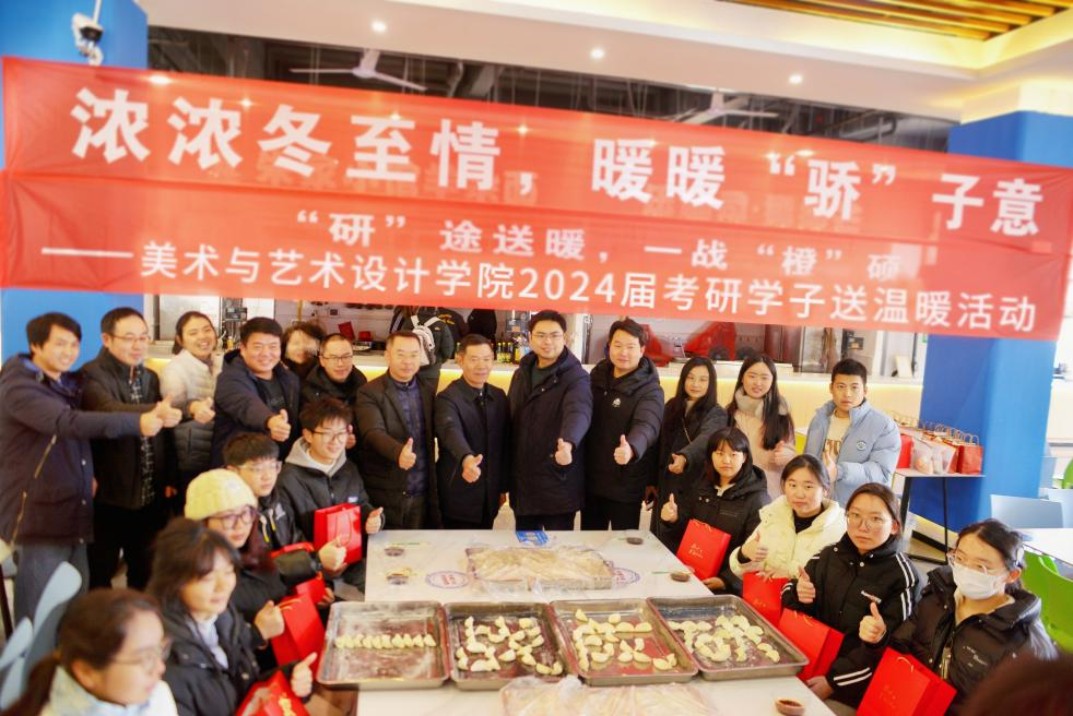 本网讯(通讯员唐天田)暖心过冬至,美院传温情。12月22日中午,“冬至遇上考研”,九游在线美术与艺术设计学院举办了一场别样的活动。校党委委员、副校长李常健,校党委委员、副校长吴小林,校团委书记万李,美术与艺术设计学院全体领导,毕业班班主任老师和辅导员老师,团学干部们一起为考研学子“包饺子”送祝福。