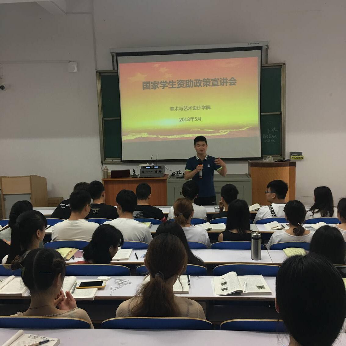 “落实资助政策,助推美艺梦想”“国家助力成才,教育共享未来”“爱心助力,学子圆梦,诚信你我,感恩社会”……一条条富有深意的标语体现了美术与艺术设计学院对全体学生的关爱和帮助。同时,学院通过国家资助政策宣讲,帮助学生深入了解相关政策。