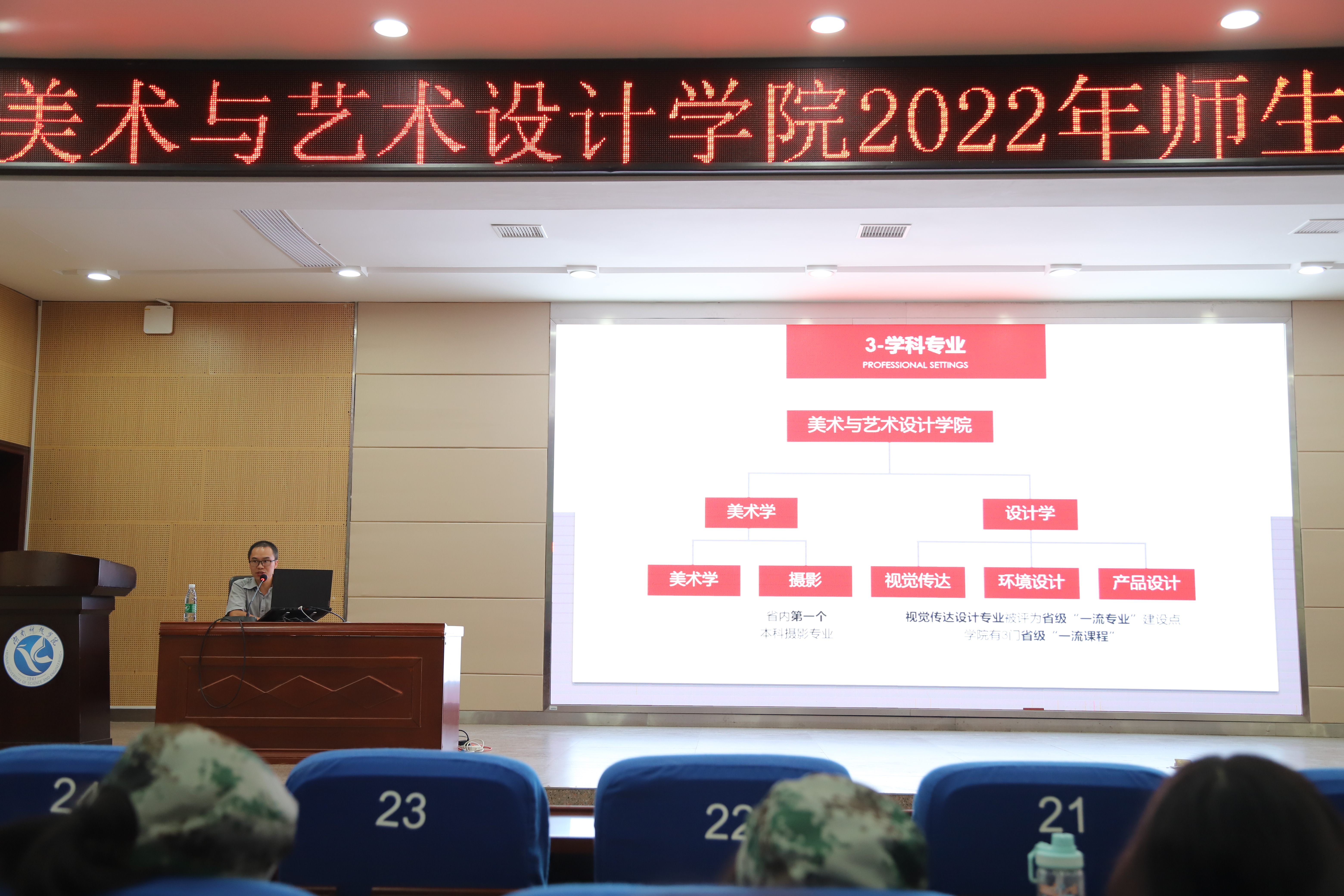 本网讯(通讯员:卿可青)9月23日晚上19点,九游在线美术与艺术设计学院在潇湘大讲堂举行2022级师生见面会暨入学教育。出席本次见面会的有院长张建利、副院长刘华、副院长柏小剑、各系系主任、各年级辅导员、2022级全体班主任。参加本次见面会的有2022级全体学生和美院团委学生会成员,本次会议由副书记林乔军主持。