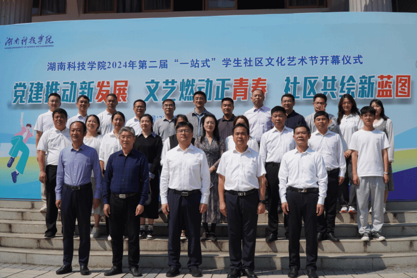 启动仪式由校党委组织部部长杨涛主持。启动仪式首先在高亢嘹亮的校歌声中拉开序幕。随后,副校长吴小林作了关于 2023-2024年度“一站式”学生社区建设的总结报告。校党委副书记宋宏福同志宣读了关于聘任 24位同志担任“一站式”学生社区党团总支书记的决定。然后,校长黄创霞讲话,他指出,面对新时代教育工作的新形势、新任务、新需求,要以党建引领“一站式”学生社区建设,不断提升“一站式”建设水平,打造有特色的学生文化服务和文化品牌。最后,校党委书记李钢宣布“以艺绘心,筑梦青春”主题系列活动正式启动。