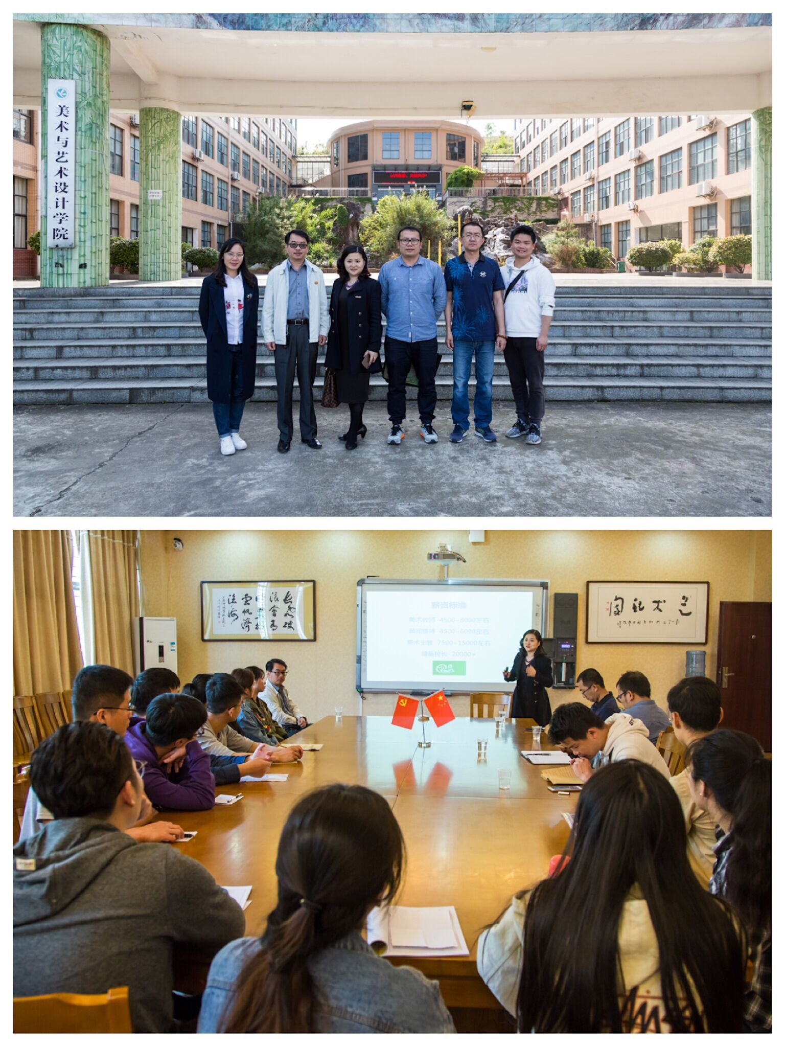 首先张建利院长对张艳梅一行来访表示欢迎并介绍了学院近年发展状况以及2019届毕业生情况。张艳梅女士介绍了冏艺美术教育的创立背景与意义,品牌的支持与发展,课程的特色与方法,校区的环境与文化。最后张艳梅结合冏艺教育全国各校区的快速发展,从人才的需求、薪资待遇、晋升空间等方面和同学们交流,表达希望与我院加强合作的意愿。