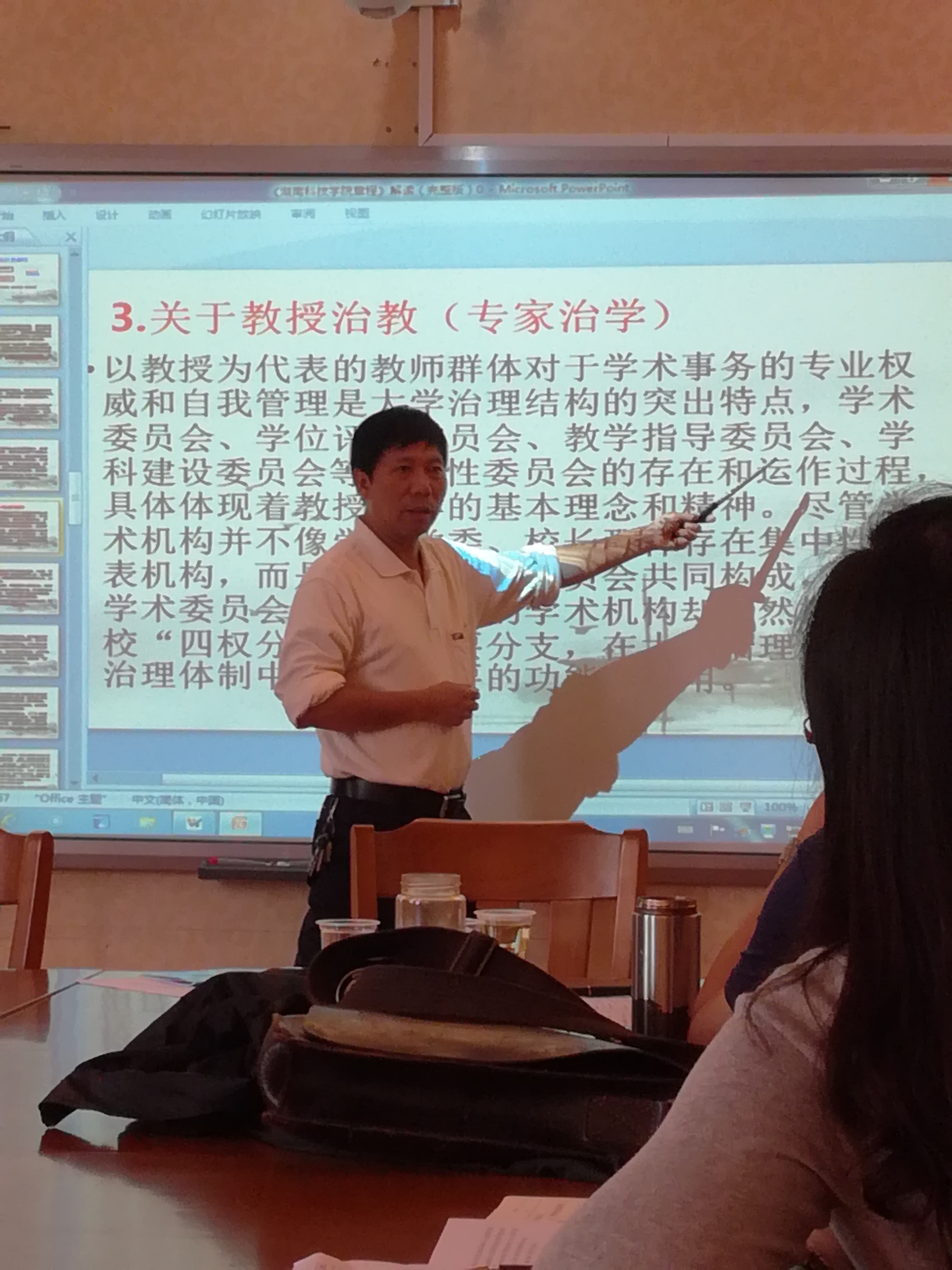 潘剑锋教授结合《章程》的起草、研究讨论、制定,带着大家一起回顾了学校在颁布《章程》之前发生的重大事件,分章解读了《章程》的主要内容,重点阐述了《章程》提出的“管理体制与运行机制”。老师们听后普遍感到,潘剑锋教授的辅导讲座主题突出、内容丰富,很受教育、很有所获。