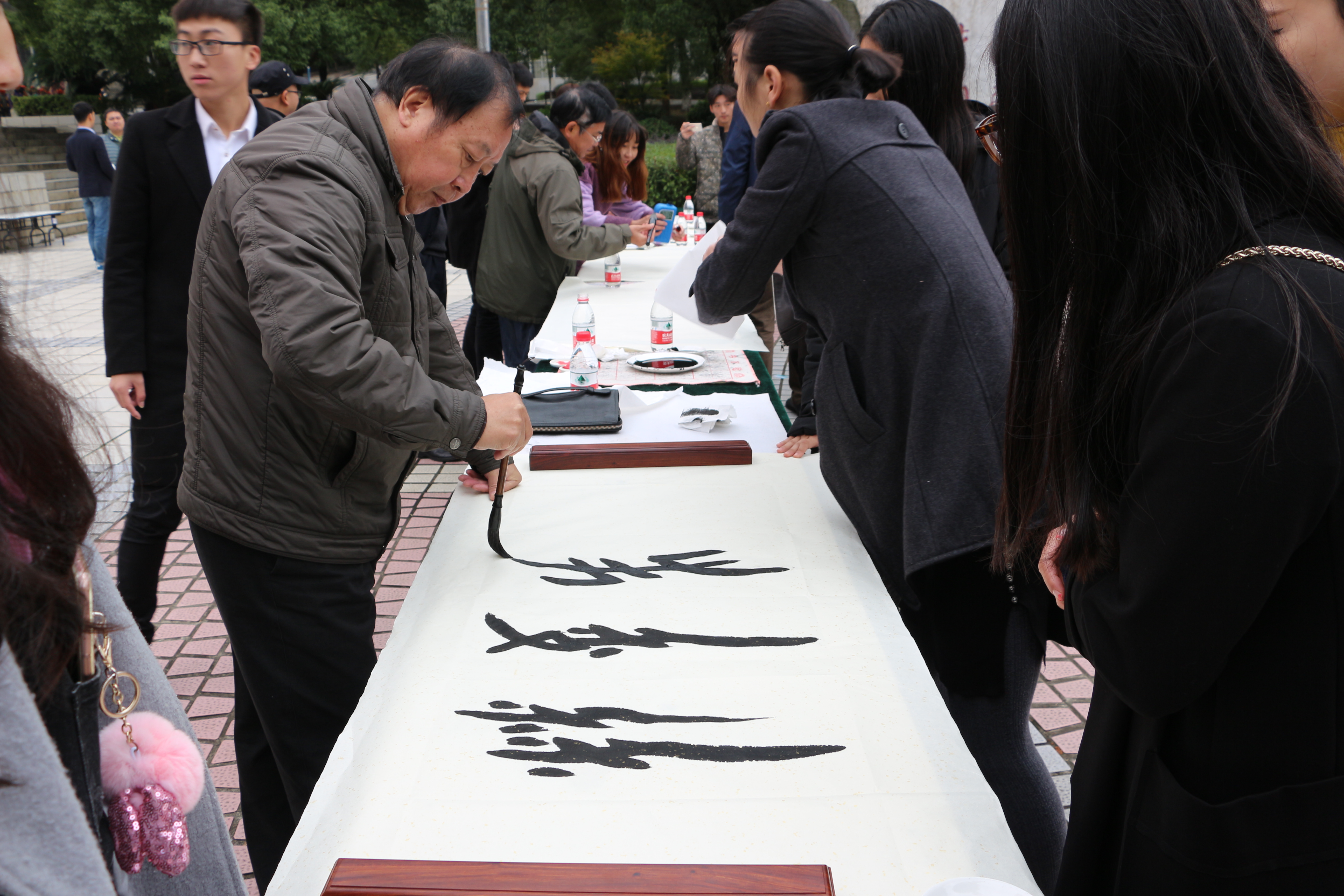 据悉,现场书法大赛历来是我校校园文化艺术节的一大特色活动,由共青团九游在线委员会主办、美术与艺术设计学院承办,已成功举行十余届。在校团委的指导下,该项活动已成为一场参与面极广、影响力极强、评价度极高的文化盛宴。本届比赛共有千余师生参加,校党委书记陈弘教授、校长曾宝成教授等一行校领导莅临本次活动现场。曾宝成校长寄语广大师生:“我们要以创建文明校园、 传承君子文化为目标,把文明教育和传承君子文化融入到我们的学习、工作和生活之中,融入到自己的一言一行之中,凝心聚力,务实进取,发扬和传承传统民族文化,增强文明意识,规范文明行为,提高文明素养,倡导文明新风,营造文明氛围,携手共建最美科院!”