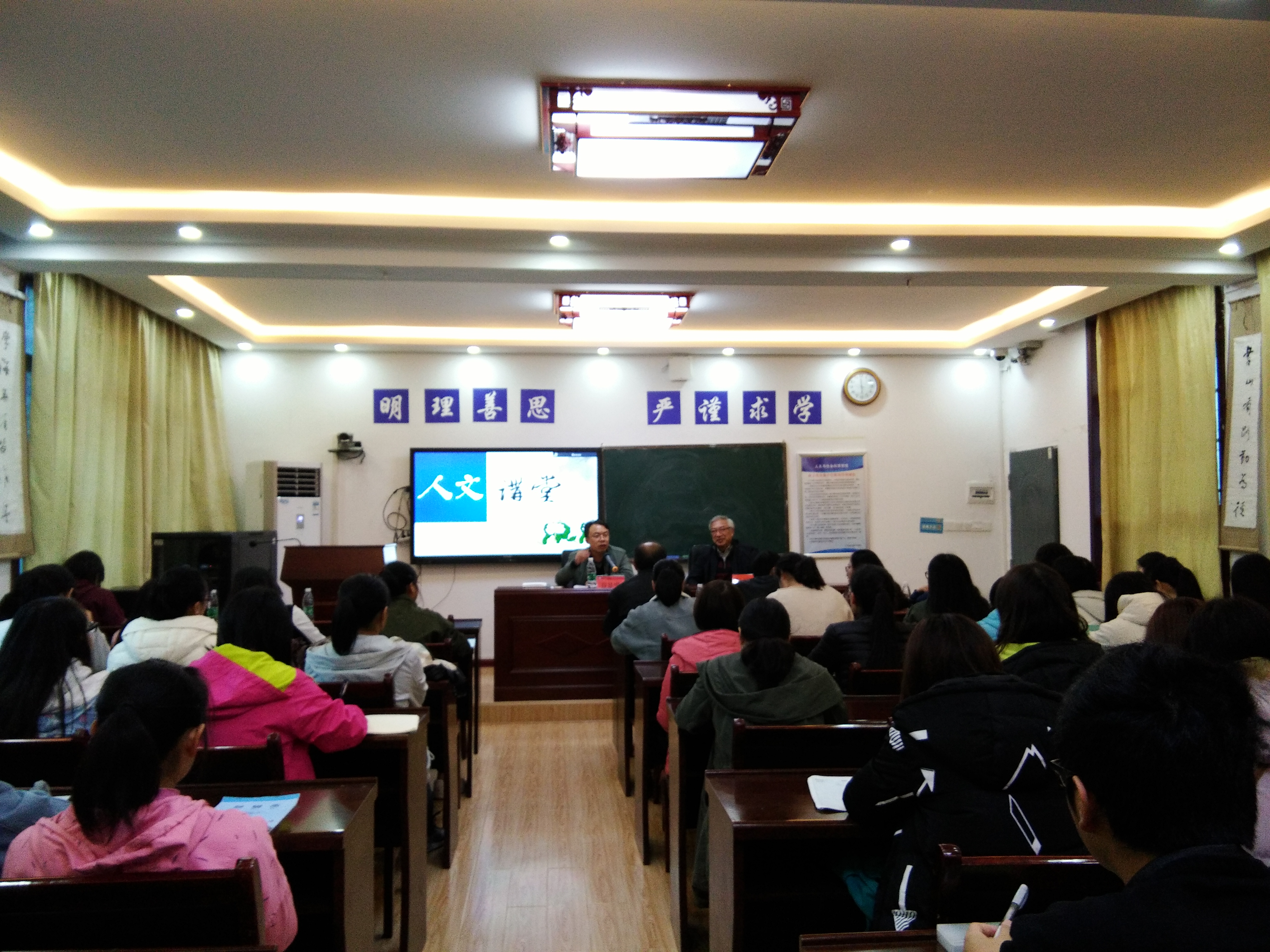 吴福辉先生从自己读书经历说起,他从小痴迷看书,初中时代就读完了鲁迅全集,他坚持每天阅读、写日记,这个习惯保持至今。他说现在的青年学生平时沉迷于手机,网络,经典名著读得太少,阅读量偏低,知识面过窄。他希望学生们多阅读,尤其是文学史所列出的经典作家作品。阅读将丰富我们的知识结构,提升我们的人文素养,对提升写作能力也能起到有事半功倍之效。