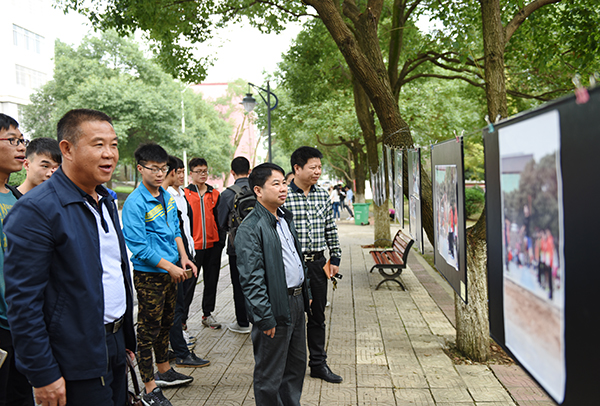 本网讯 为展现大学生积极向上、拼搏奋进的精神风貌,11月17日至18日,我校在行政办公楼前举行田径运动会摄影展,本次展览以“青春、文明、和谐”为主题,吸引了广大师生前来观看,引起热烈反响。副校长李常健、程智开欣然前往观看。