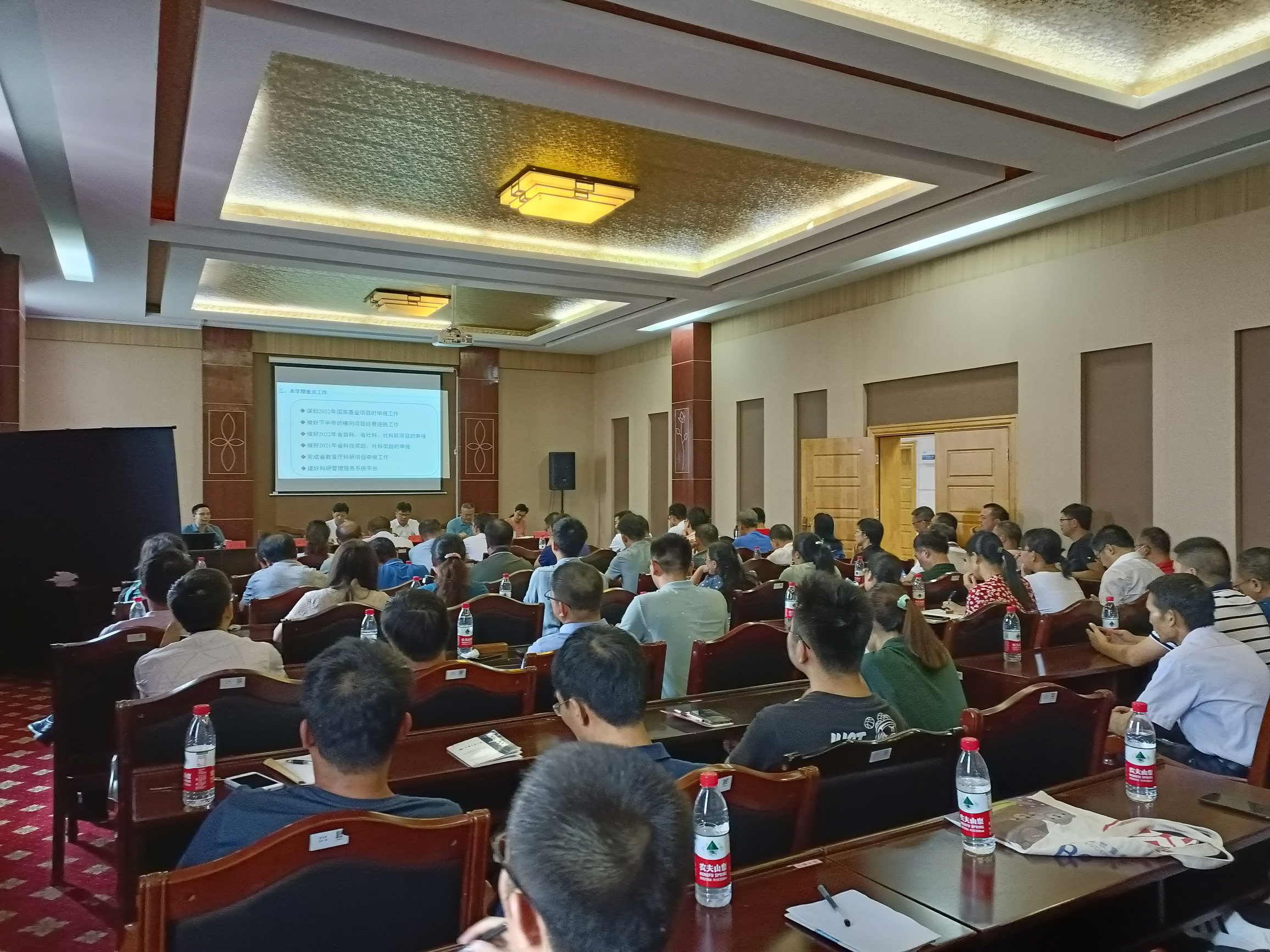 各学院高层次人才、博士代表,获2021年国家自科基金和国家社科基金立项主持人,科技处全体人员参加会议。