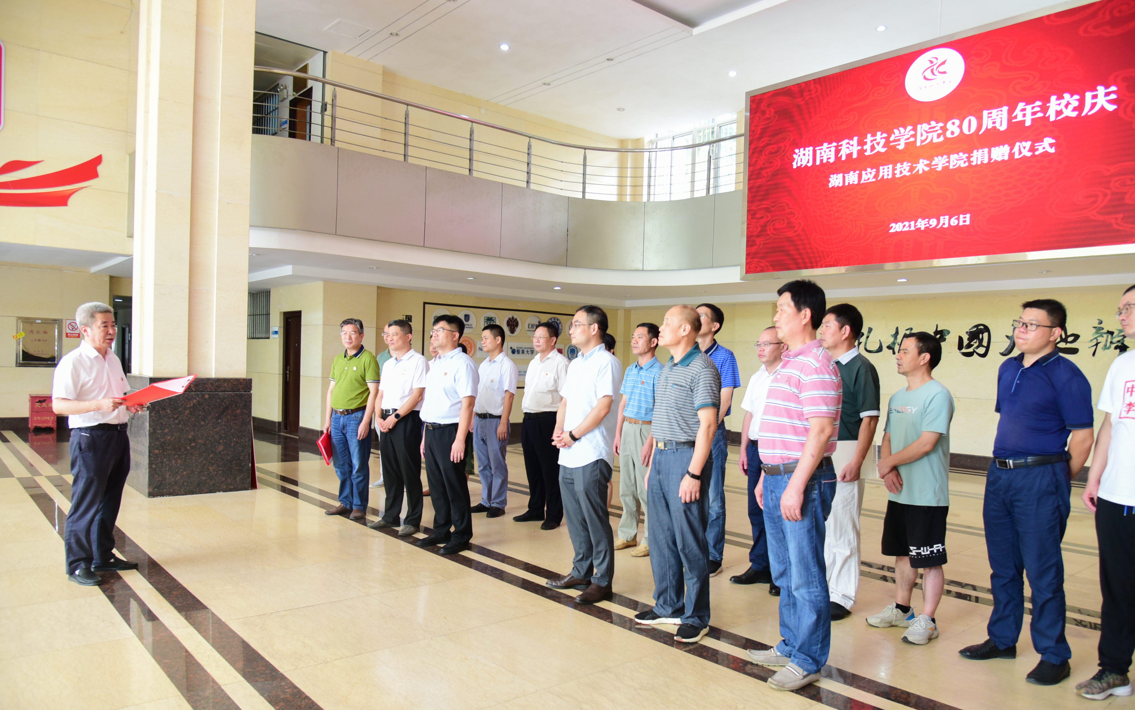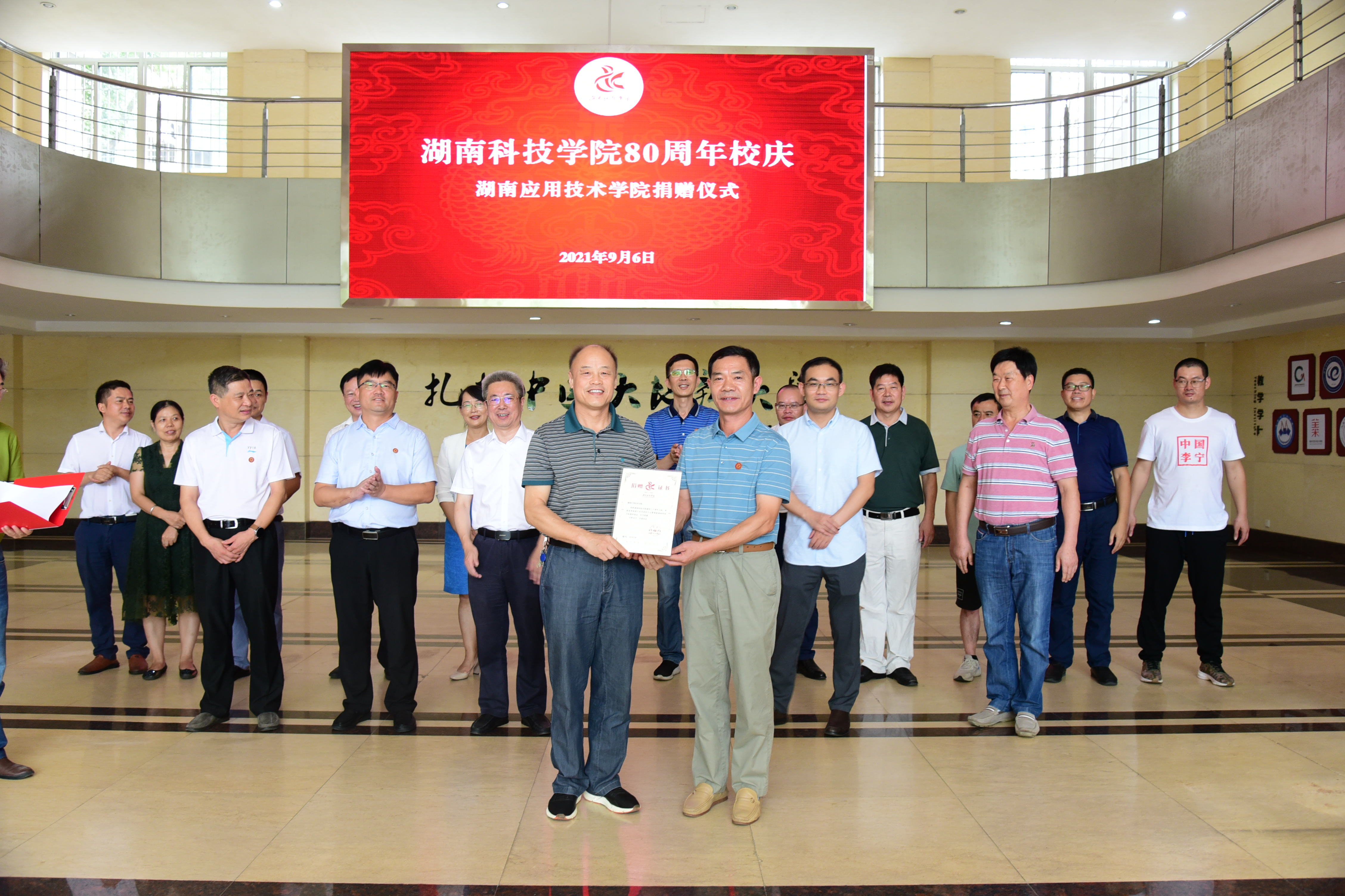 湖南应用技术学院校长李旋旗,党委委员、常务副校长李敏,党委副书记刘孟初,我校党委书记曾宝成,党委副书记、校长李钢,校领导宋宏福、吴小林、陈灿军、郑银芳、何海出席捐赠仪式。