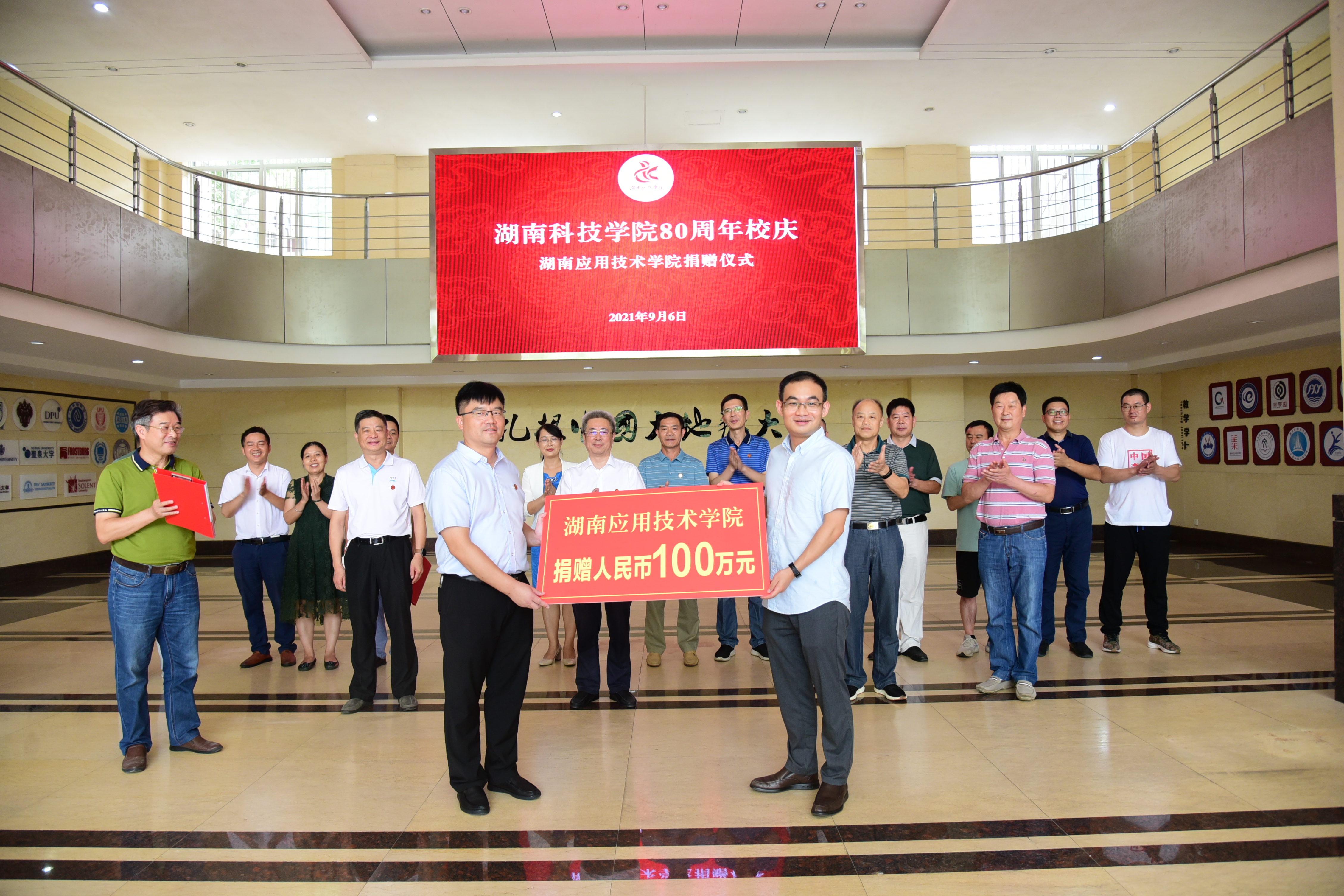 本网讯 9月6日上午,湖南应用技术学院为我校80周年校庆捐赠100万元,支持我校建设环校道路。