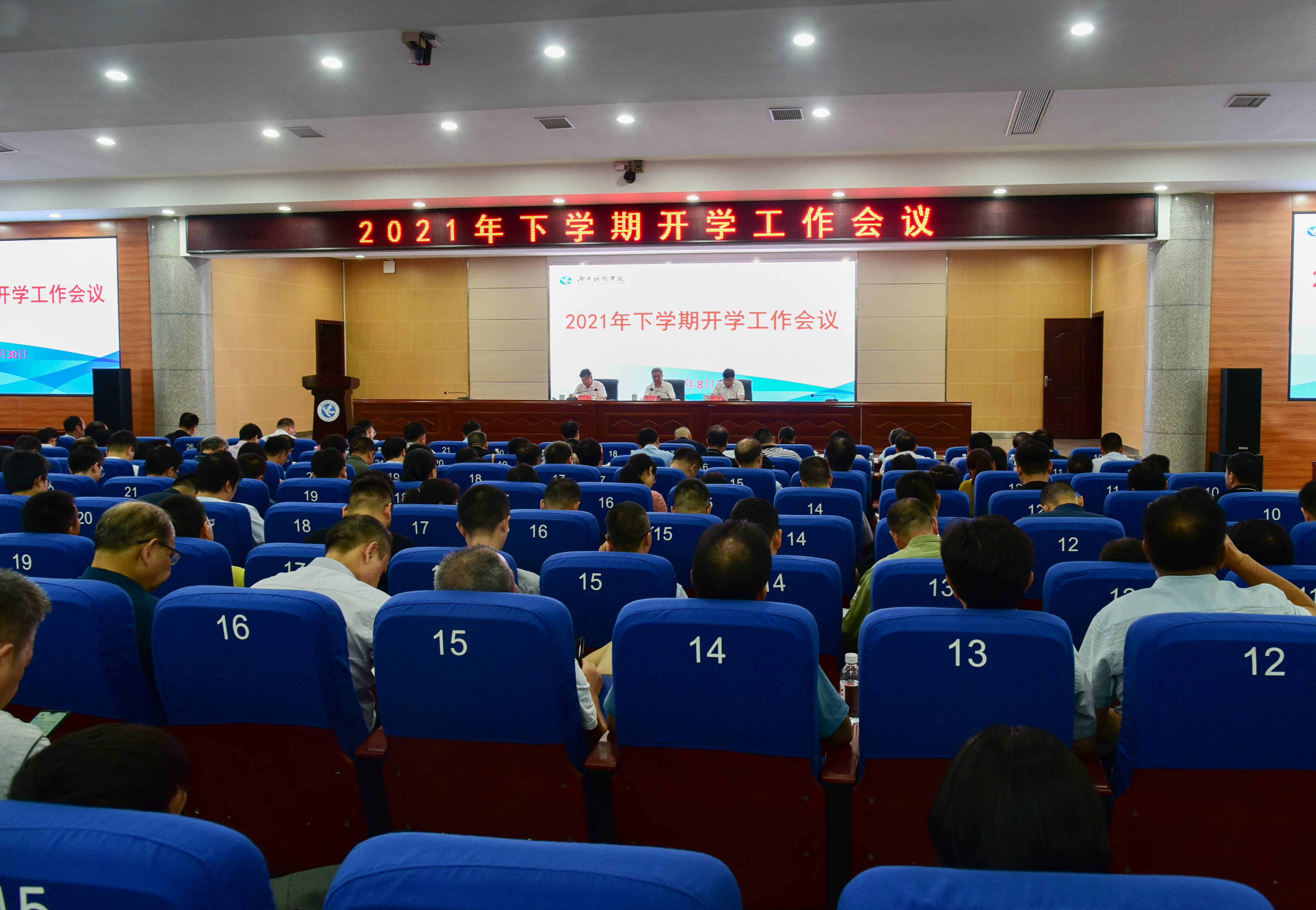 本网讯 8月30日上午,学校召开2021年下学期开学工作会议,总结暑期工作,部署新学期工作。校长李钢要求,各单位要开好收心会、动员会、鼓劲会、布置会,确保教职员工以饱满的精神状态投入到新学期的工作和学习中。全体校领导,全体中层干部参加会议。