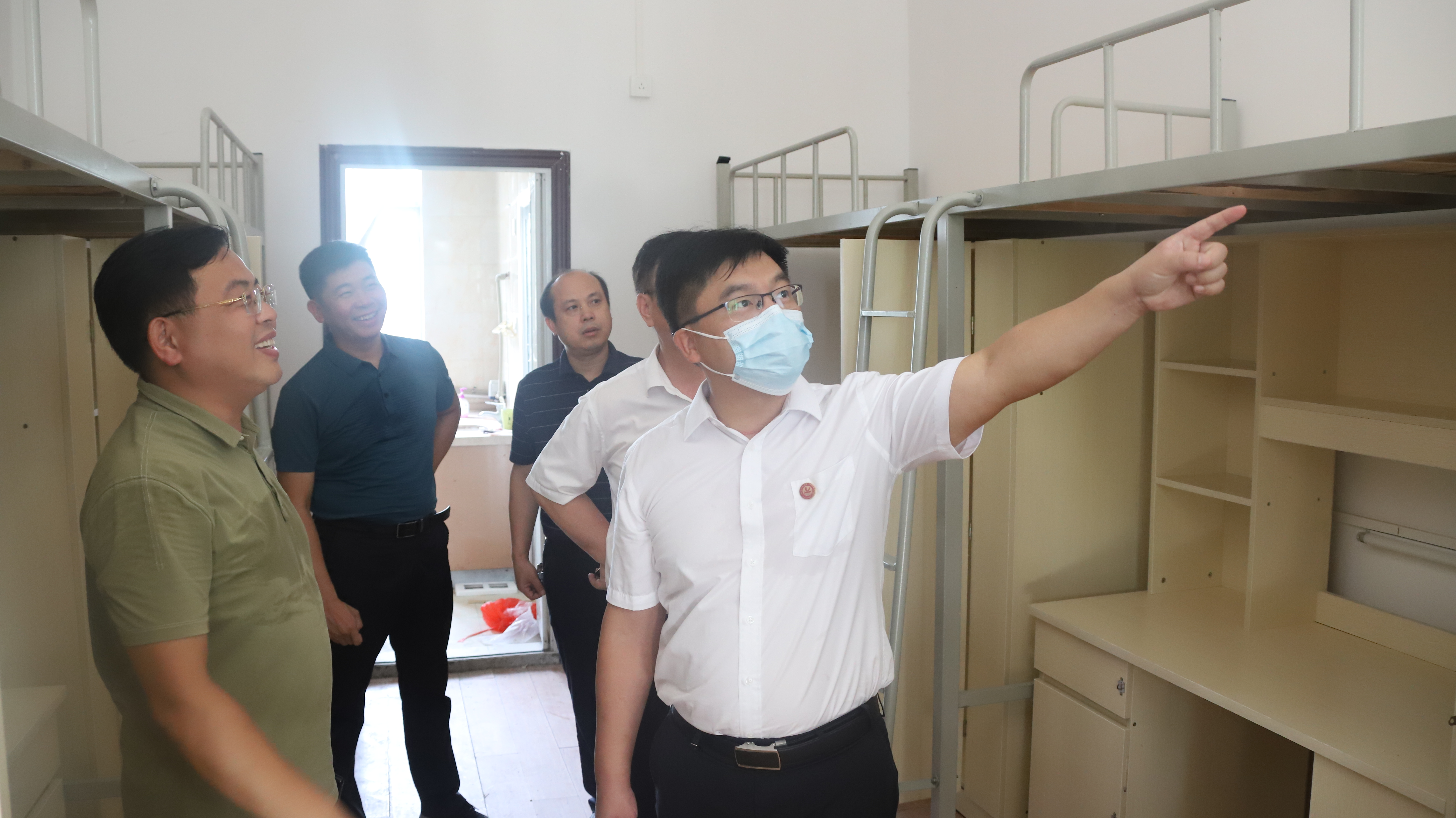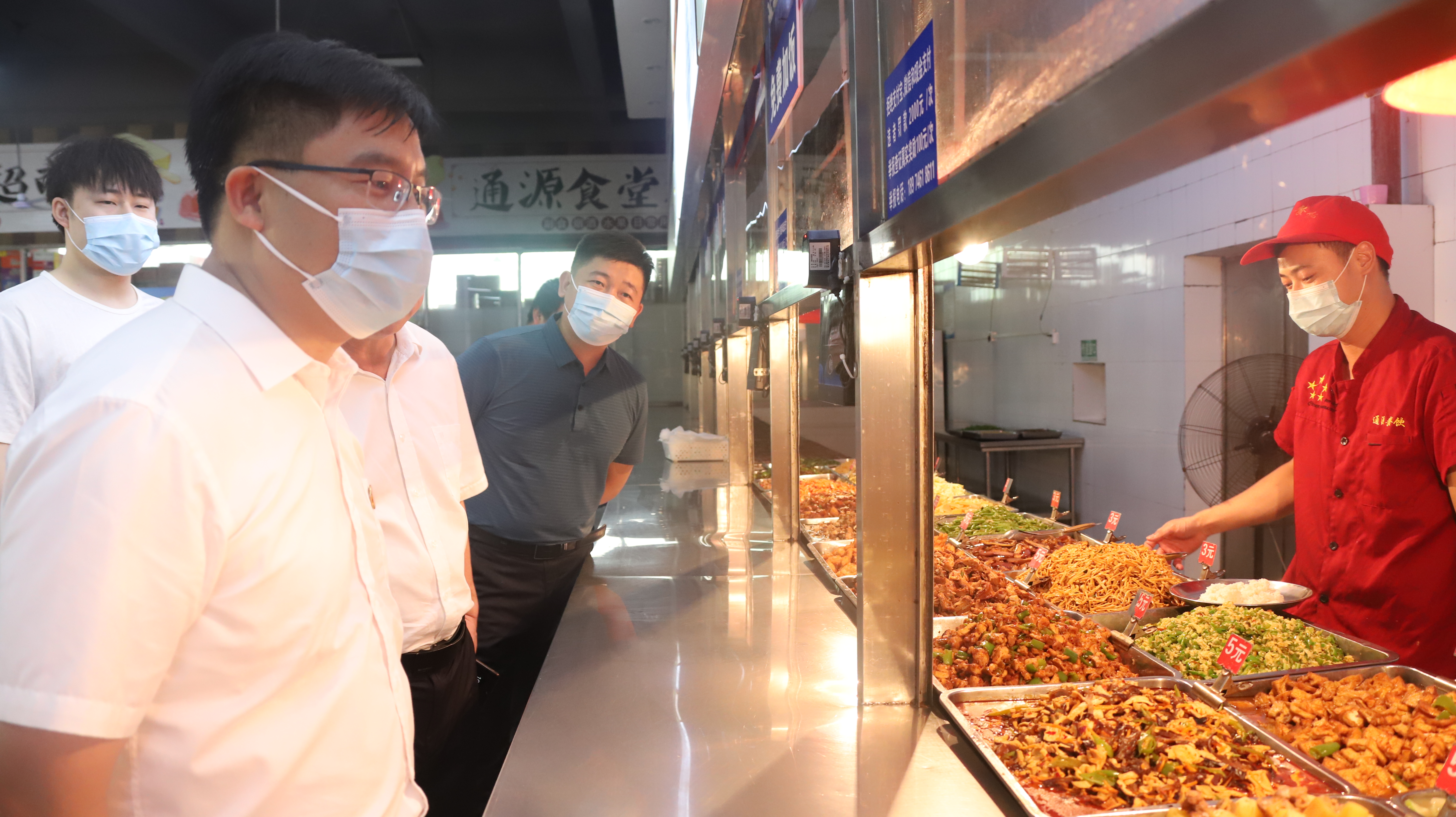 本网讯 8月9日至10日,正值连日高温,校长李钢,副校长吴小林、郑银芳在相关职能部门负责人陪同下,先后到校门口、医务室、图书馆、学生公寓、学生食堂等地,指导检查暑期学校各项工作并慰问坚守在岗的一线教职工。