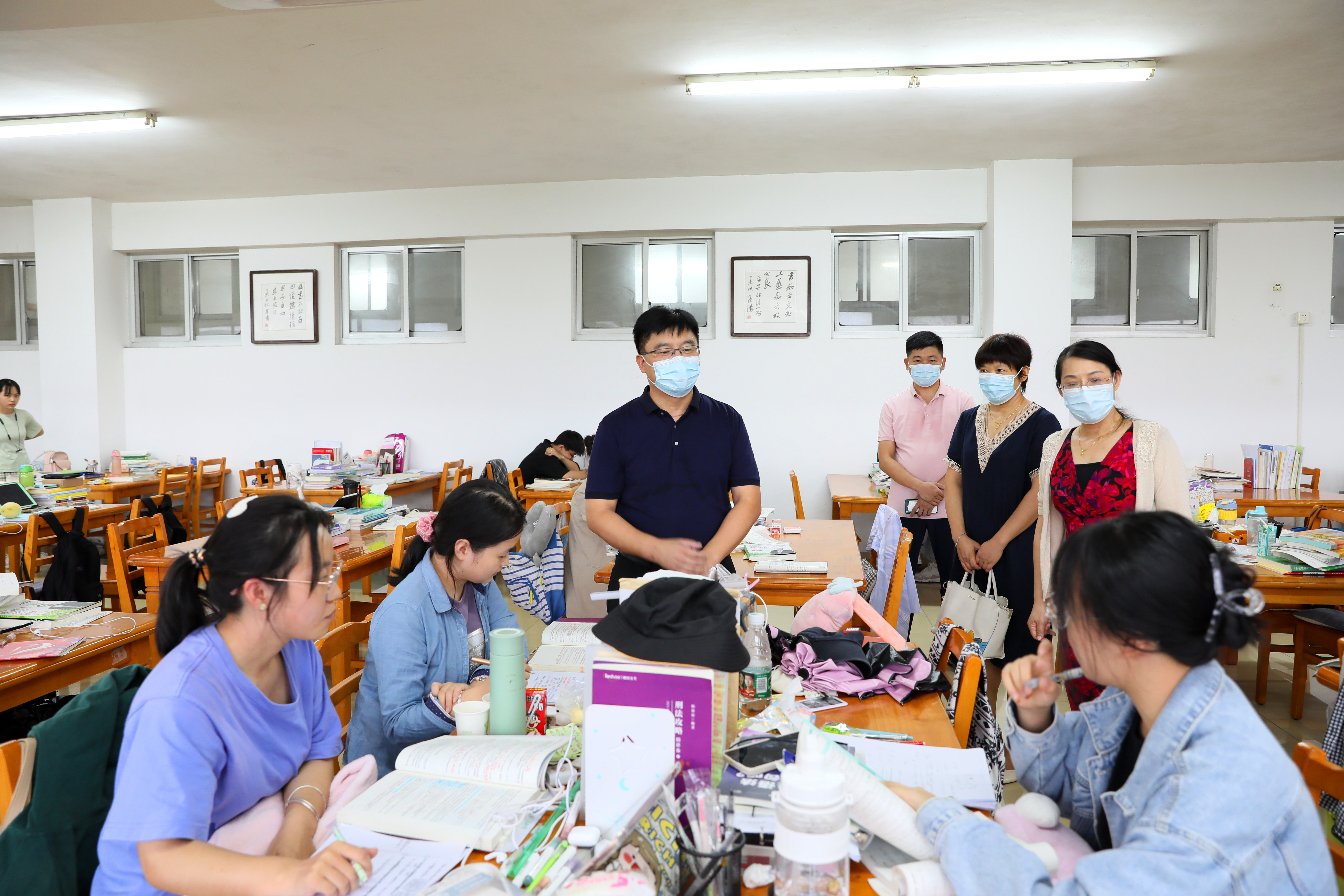 在文法学院教室、图书馆,校领导与正在认真学习的同学们进行亲切交流。李钢勉励同学们要坚定信念,明确目标,保持恒心,注重方法,提高效率,树立良好心态,做到劳逸结合、张弛有度。李钢还嘱咐在场的后勤、学工等部门负责人要搞好服务保障工作。离开时,李钢鼓励同学们勤奋学习,争创佳绩,请党放心、强国有我!