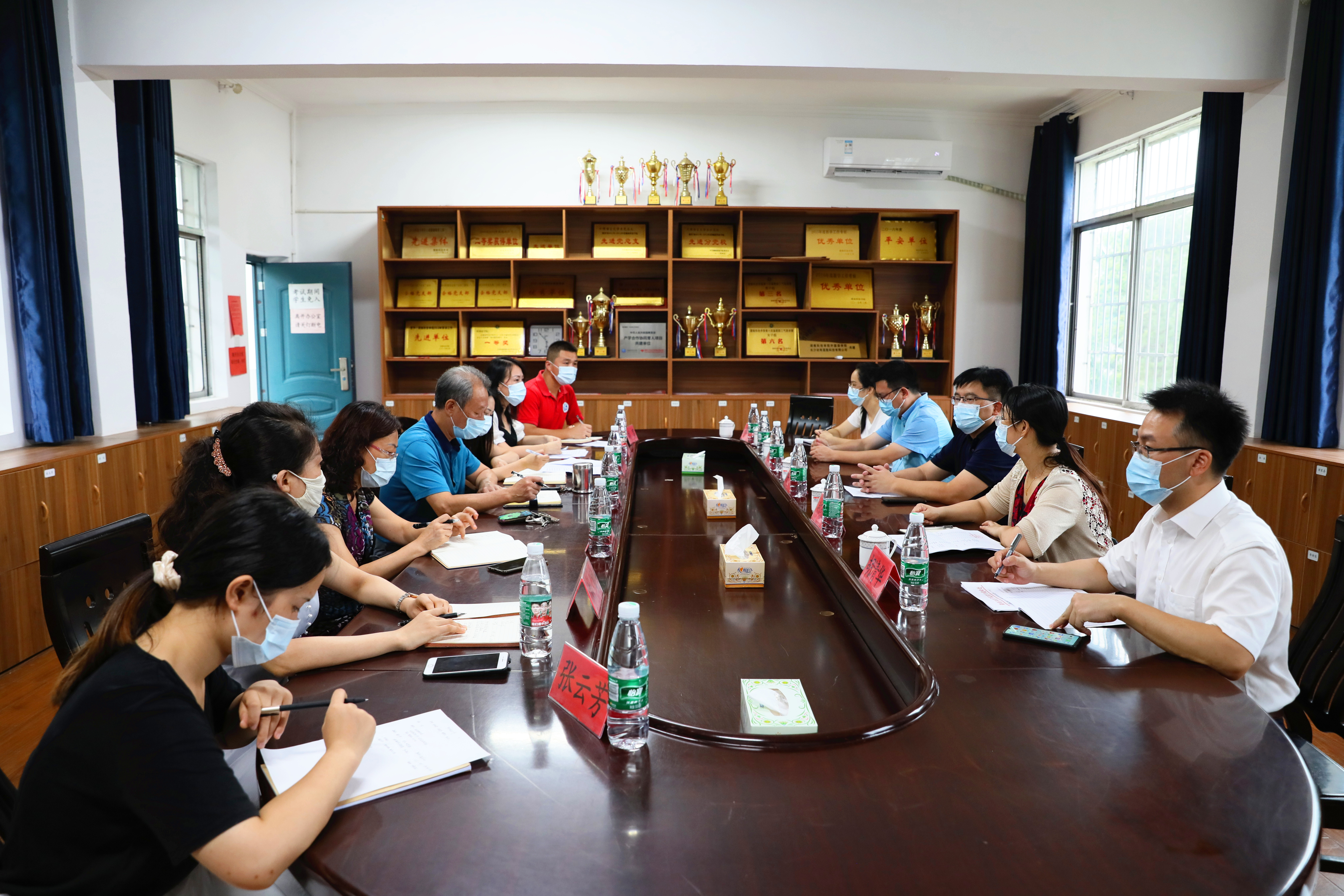 在医务室,校领导看望慰问了在岗一线医护人员,检查相关工作开展情况。李钢嘱咐医护人员要以对师生身体健康和生命安全高度负责的态度,全力做好防控工作,并请医护人员务必注意自身安全,切实做好防护。同时,要做好防疫物资储备,做好开学准备工作。