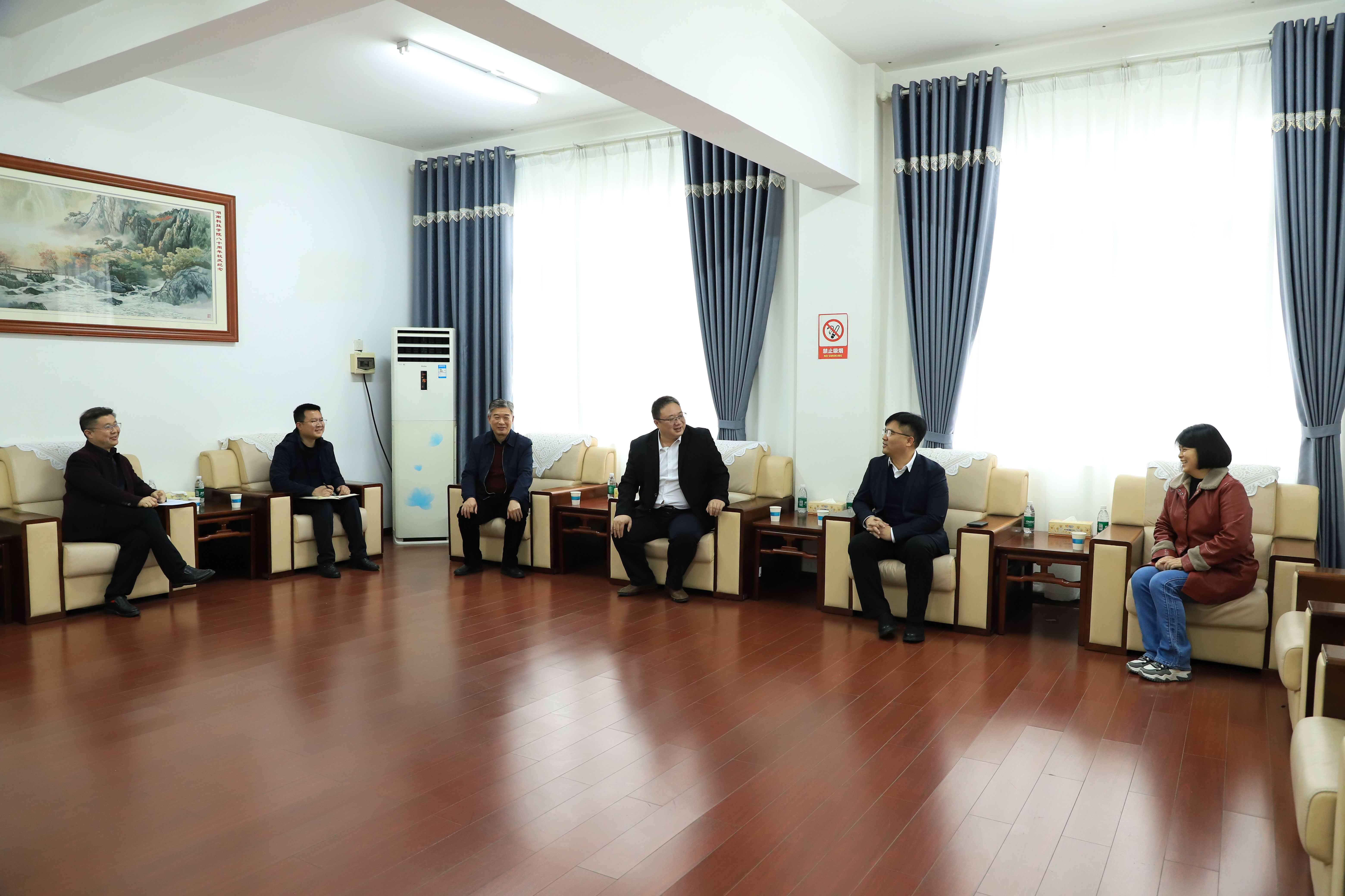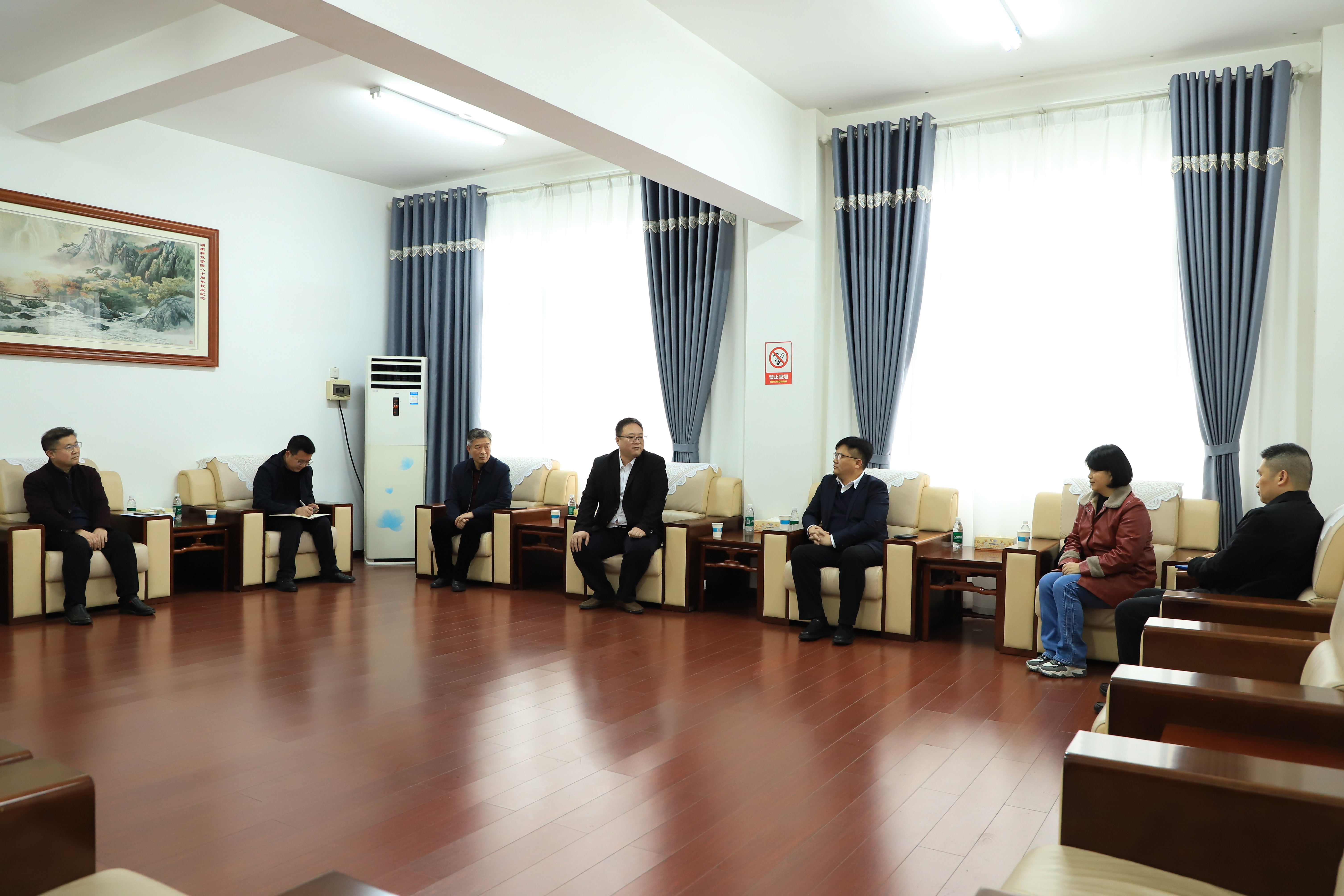 本网讯 3月13日,全国人大代表、物理教育98级校友、永州市东安县耀祥中学教师胡国柱返校座谈交流。党委书记李钢,党委副书记宋宏福出席。