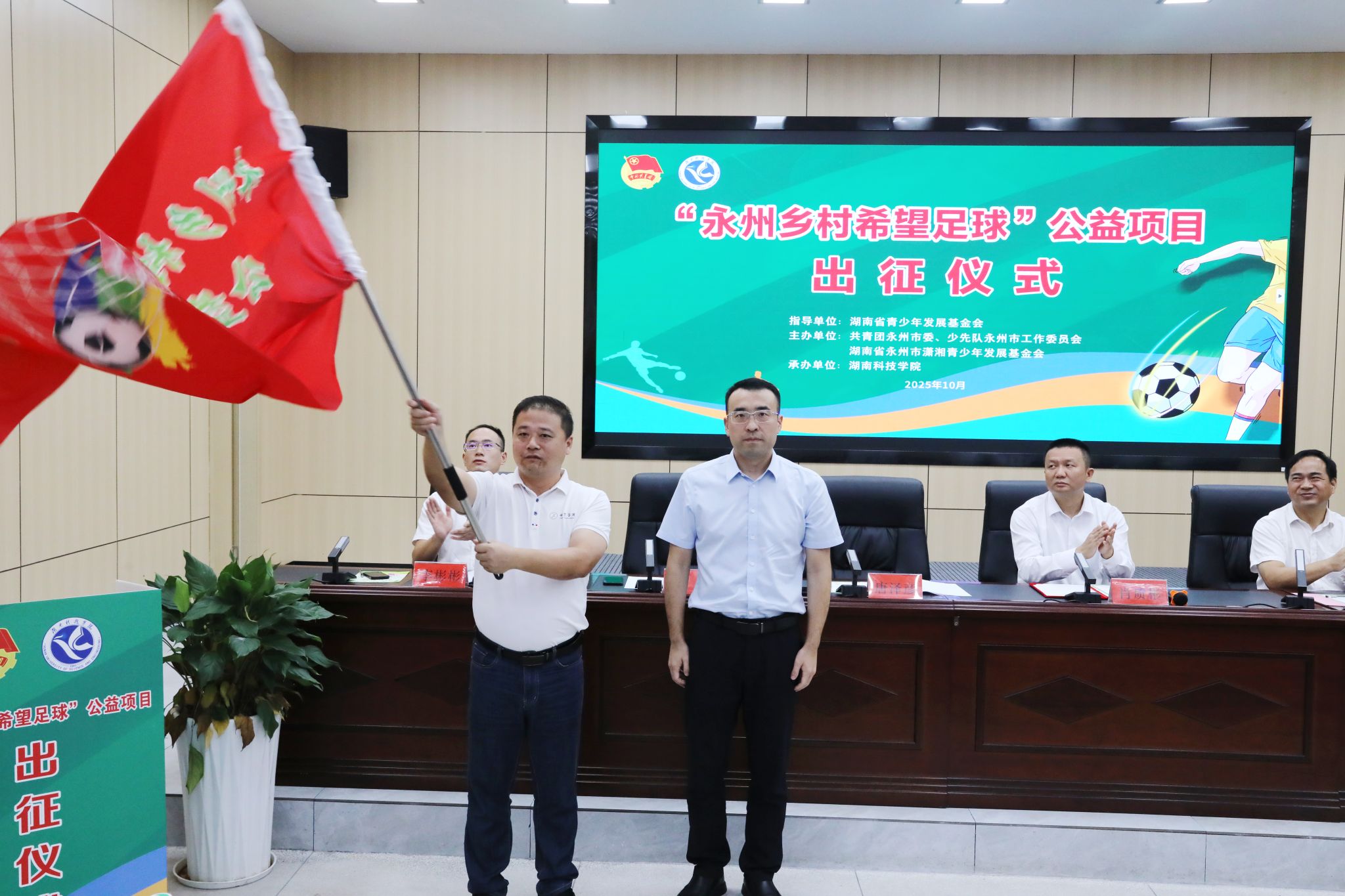 “永州乡村希望足球”公益项目由共青团永州市委、永州市少工委、永州市青基会联合发起,由我校体育学院提供技术支持,由市青基会提供专项经费保障,由项目承接县市区配合实施。据悉,项目第一期承接县为新田县,体育学院选派的10名足球专业大学生志愿者将入驻新田县10所乡村小学开展为期2个月的支教活动,为支教学校带训出一支少年足球队,并在支教结束后协助县区组织10所支教学校举办一轮足球联赛。